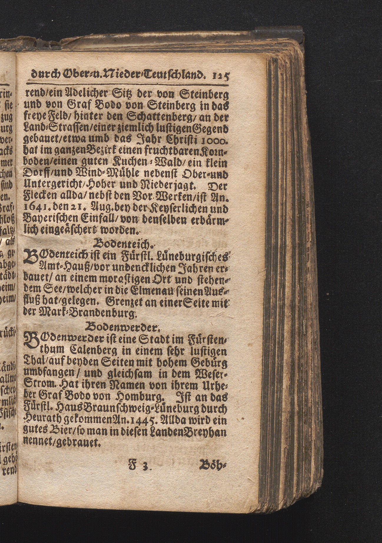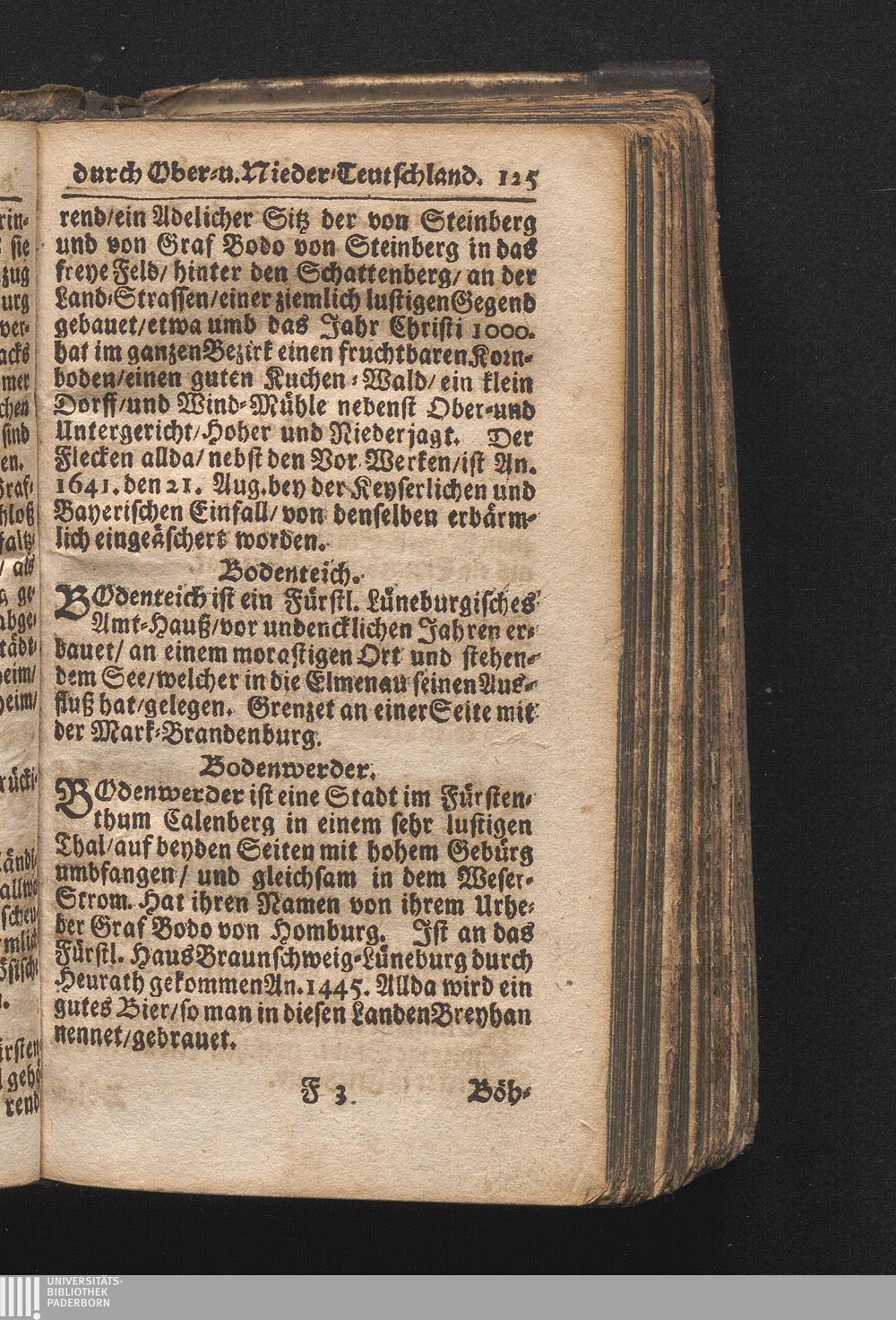 Der getreue Reiß-Gefert durch Ober- und Nieder-Teutschland : Das ist: Grundrichtige und ausführliche Abhandlung derer jenigen Residenzien/ Städte/ Schlösser/ Vestungen/ Städtlein und nahmhafften Markflecken/ welche so wol in Ober- als Nieder-Teutschland/ einem Reisenden sich hin und wieder vorstellig machen und zwar solcher Gestalt/ daß darinn derer Ursprung/ Aufnahm/ Fortification/ Raritäten/ herrliche Gebäue/ und Glück- und Unglücks-Fälle bis auf gegenwärtige Zeit fortgesetzt enthalten. Dabey auch noch über das ein absonderlicher kurz-gefasster Weegweiser angehänget zu finden/ worinnen klärlich zu sehen, wie viel Meilen ein Ort von dem andern entlegen. Alles aus denen bewährtesten Scribenten hervorgesuchet/ zum Nutz-Ergötzen mitgetheilet ...