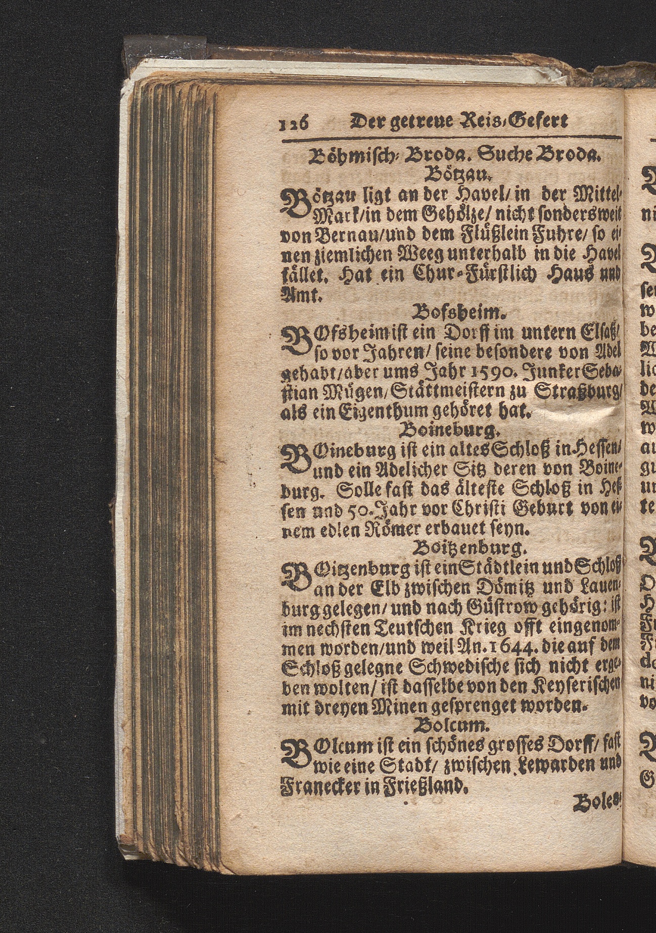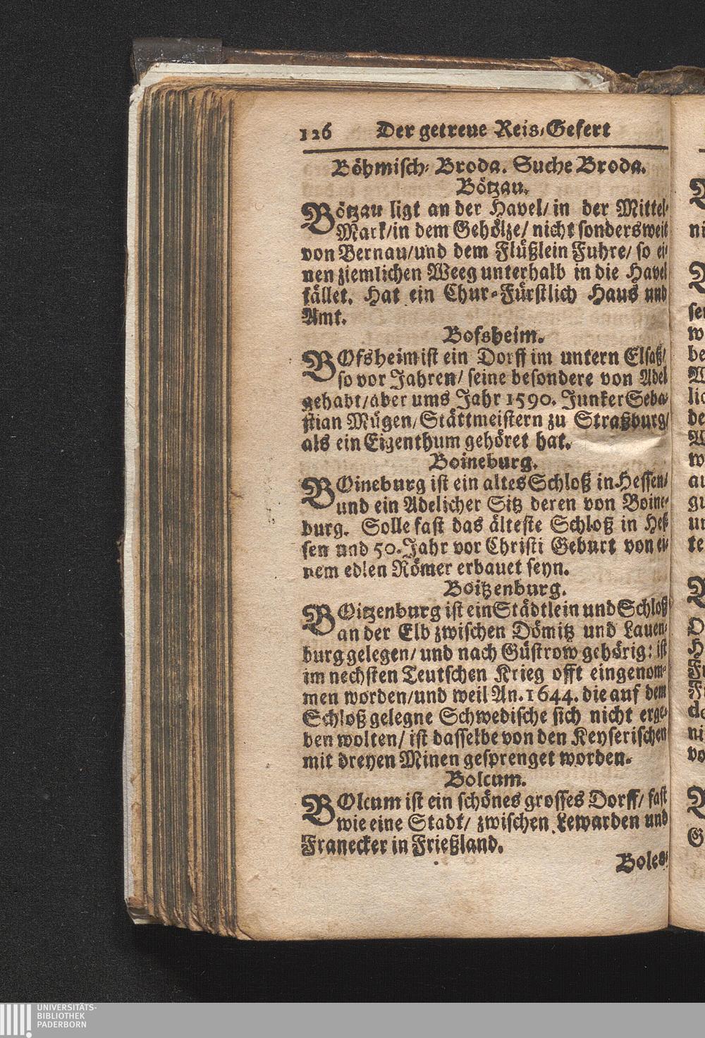Der getreue Reiß-Gefert durch Ober- und Nieder-Teutschland : Das ist: Grundrichtige und ausführliche Abhandlung derer jenigen Residenzien/ Städte/ Schlösser/ Vestungen/ Städtlein und nahmhafften Markflecken/ welche so wol in Ober- als Nieder-Teutschland/ einem Reisenden sich hin und wieder vorstellig machen und zwar solcher Gestalt/ daß darinn derer Ursprung/ Aufnahm/ Fortification/ Raritäten/ herrliche Gebäue/ und Glück- und Unglücks-Fälle bis auf gegenwärtige Zeit fortgesetzt enthalten. Dabey auch noch über das ein absonderlicher kurz-gefasster Weegweiser angehänget zu finden/ worinnen klärlich zu sehen, wie viel Meilen ein Ort von dem andern entlegen. Alles aus denen bewährtesten Scribenten hervorgesuchet/ zum Nutz-Ergötzen mitgetheilet ...