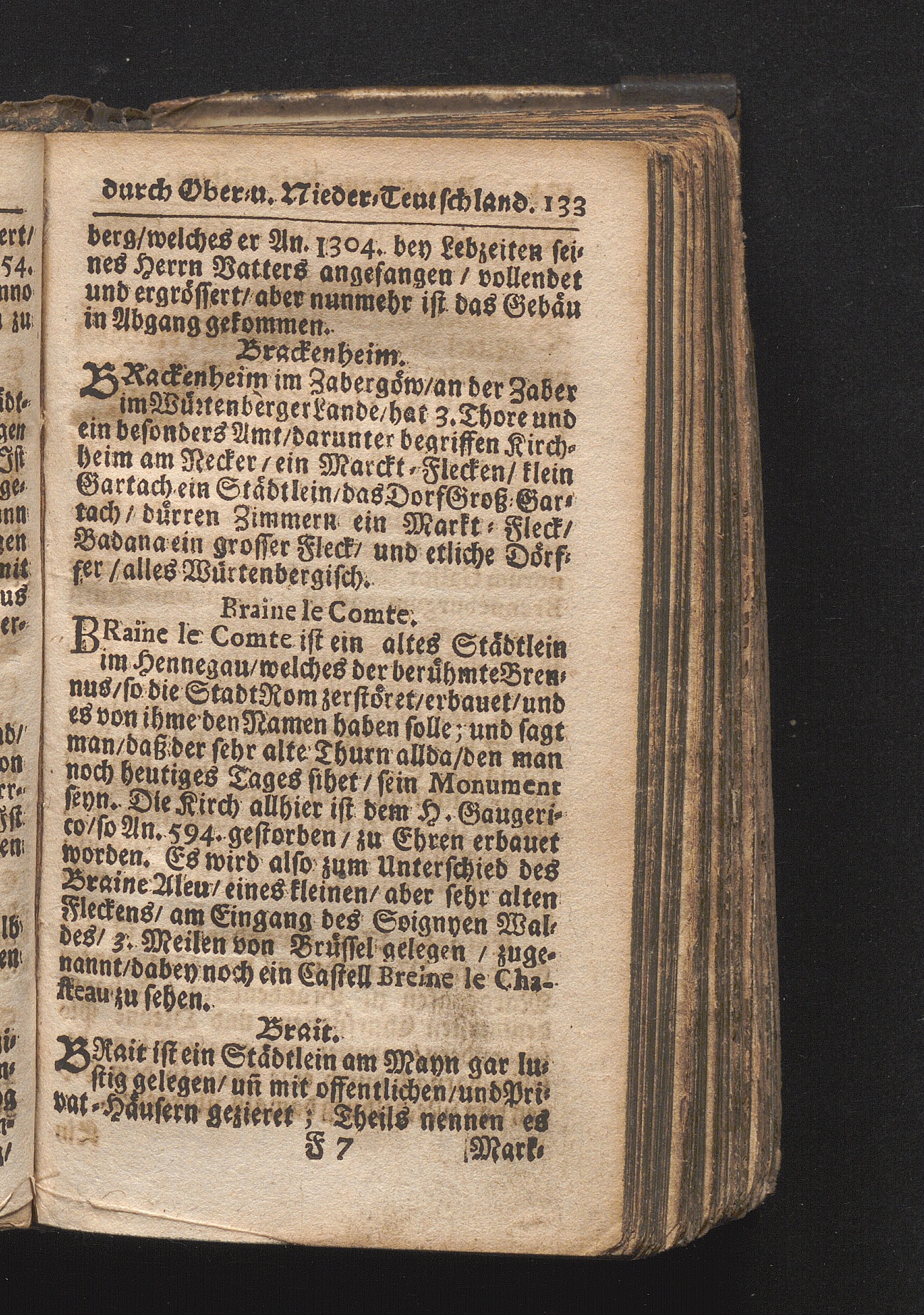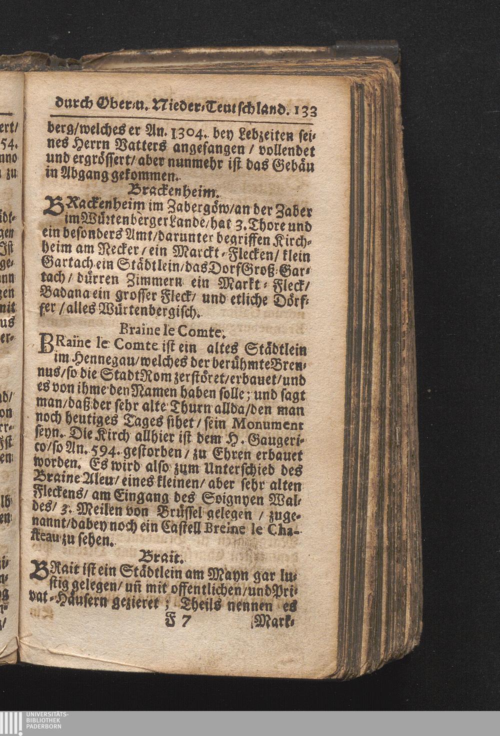 Der getreue Reiß-Gefert durch Ober- und Nieder-Teutschland : Das ist: Grundrichtige und ausführliche Abhandlung derer jenigen Residenzien/ Städte/ Schlösser/ Vestungen/ Städtlein und nahmhafften Markflecken/ welche so wol in Ober- als Nieder-Teutschland/ einem Reisenden sich hin und wieder vorstellig machen und zwar solcher Gestalt/ daß darinn derer Ursprung/ Aufnahm/ Fortification/ Raritäten/ herrliche Gebäue/ und Glück- und Unglücks-Fälle bis auf gegenwärtige Zeit fortgesetzt enthalten. Dabey auch noch über das ein absonderlicher kurz-gefasster Weegweiser angehänget zu finden/ worinnen klärlich zu sehen, wie viel Meilen ein Ort von dem andern entlegen. Alles aus denen bewährtesten Scribenten hervorgesuchet/ zum Nutz-Ergötzen mitgetheilet ...