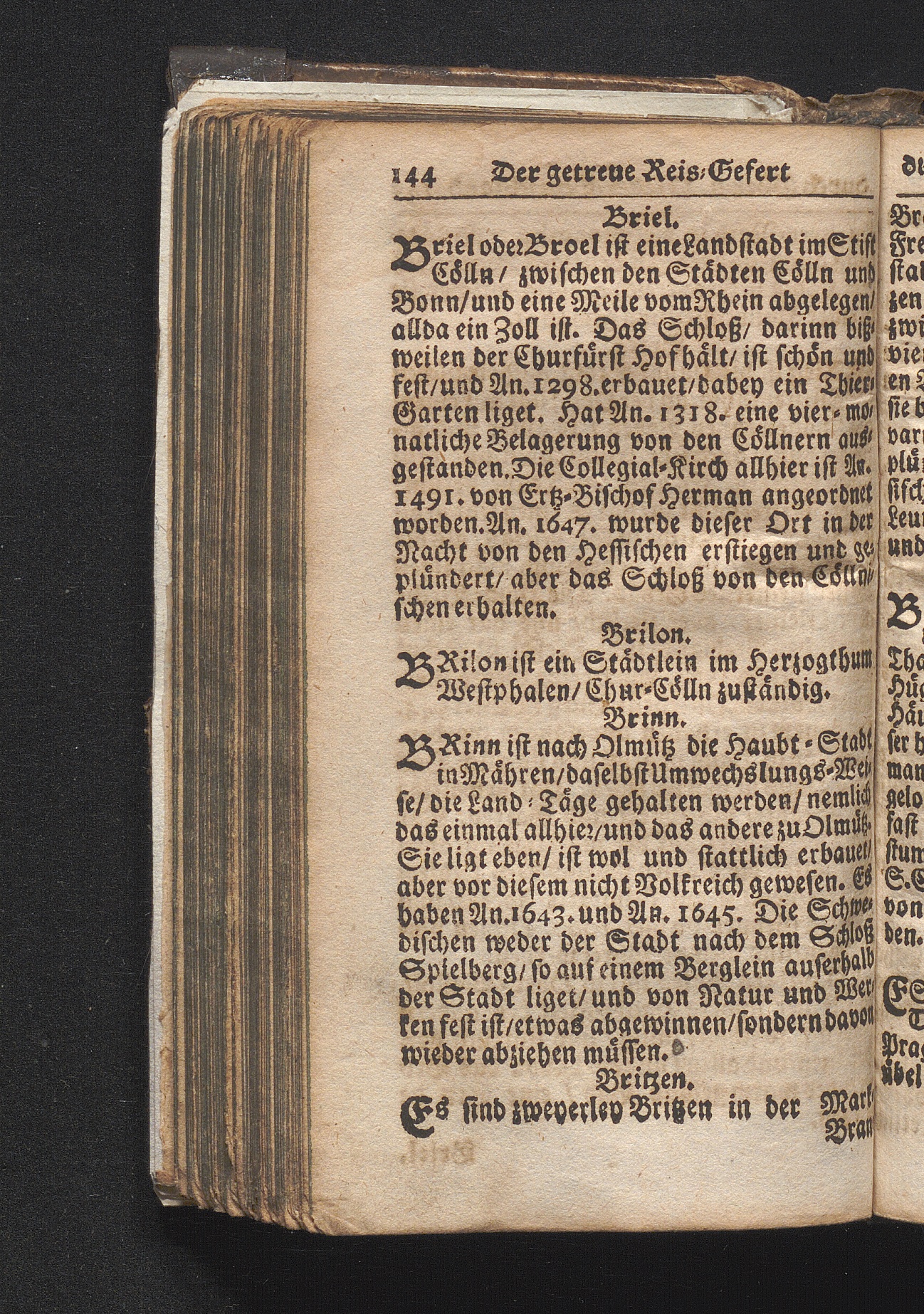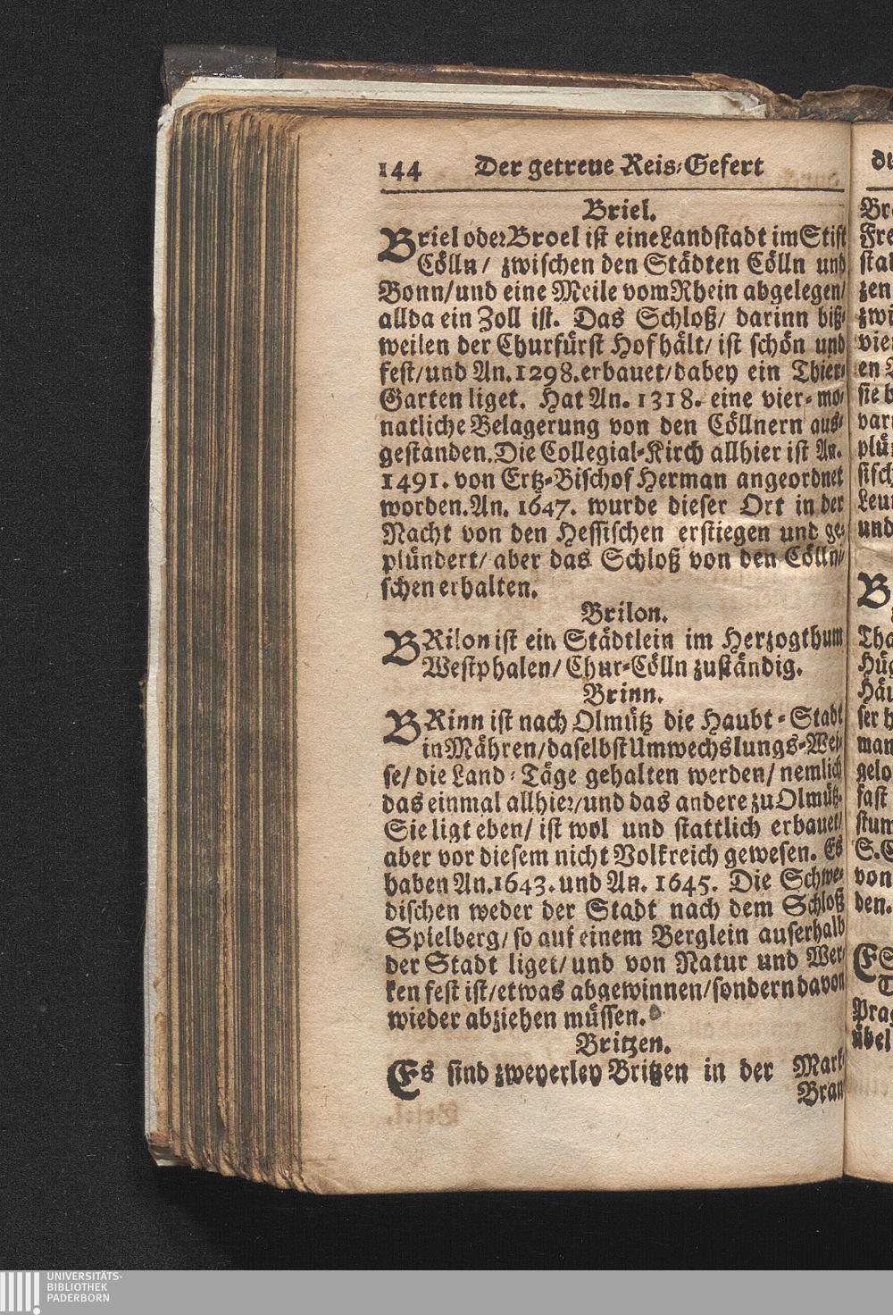 Der getreue Reiß-Gefert durch Ober- und Nieder-Teutschland : Das ist: Grundrichtige und ausführliche Abhandlung derer jenigen Residenzien/ Städte/ Schlösser/ Vestungen/ Städtlein und nahmhafften Markflecken/ welche so wol in Ober- als Nieder-Teutschland/ einem Reisenden sich hin und wieder vorstellig machen und zwar solcher Gestalt/ daß darinn derer Ursprung/ Aufnahm/ Fortification/ Raritäten/ herrliche Gebäue/ und Glück- und Unglücks-Fälle bis auf gegenwärtige Zeit fortgesetzt enthalten. Dabey auch noch über das ein absonderlicher kurz-gefasster Weegweiser angehänget zu finden/ worinnen klärlich zu sehen, wie viel Meilen ein Ort von dem andern entlegen. Alles aus denen bewährtesten Scribenten hervorgesuchet/ zum Nutz-Ergötzen mitgetheilet ...
