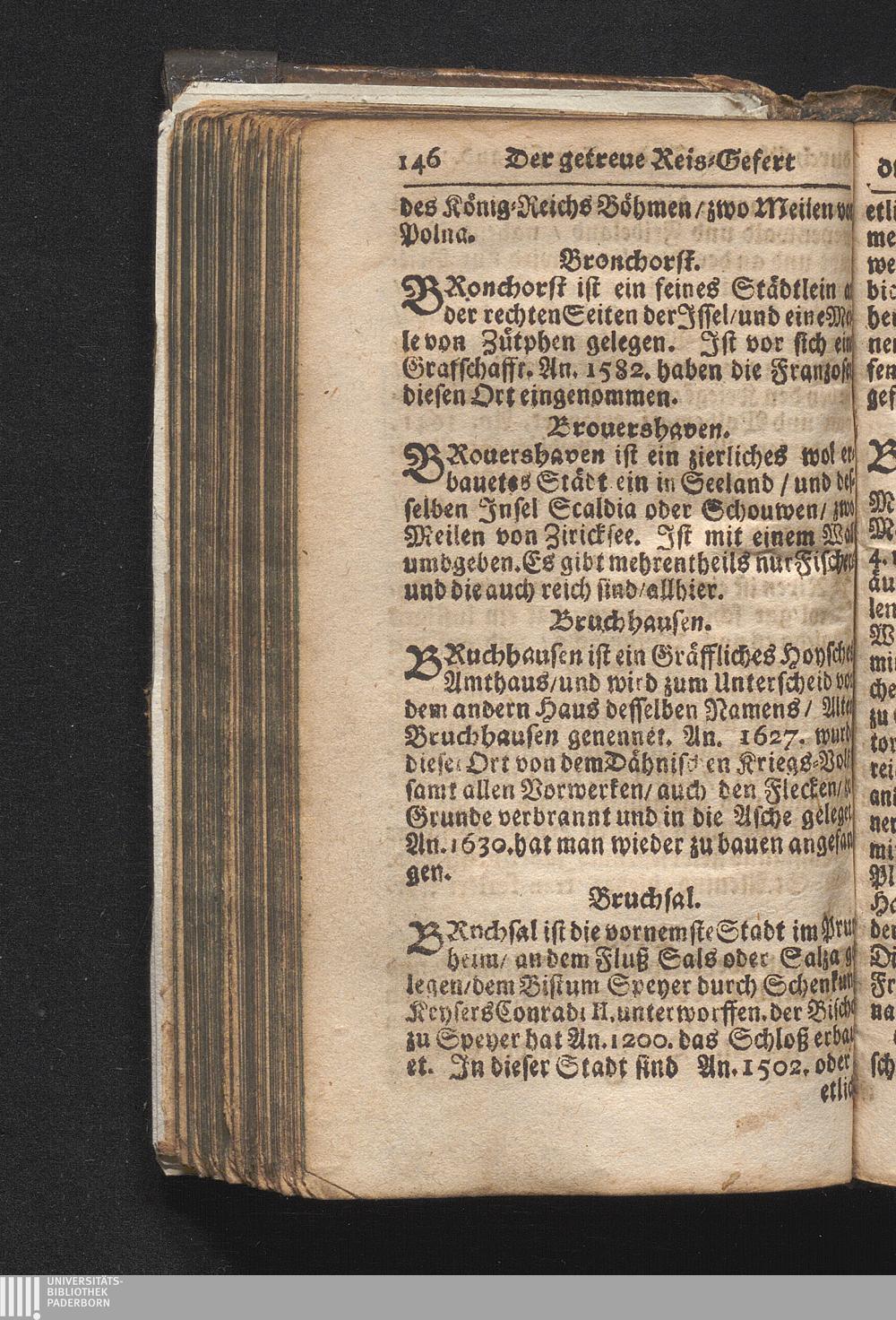 Der getreue Reiß-Gefert durch Ober- und Nieder-Teutschland : Das ist: Grundrichtige und ausführliche Abhandlung derer jenigen Residenzien/ Städte/ Schlösser/ Vestungen/ Städtlein und nahmhafften Markflecken/ welche so wol in Ober- als Nieder-Teutschland/ einem Reisenden sich hin und wieder vorstellig machen und zwar solcher Gestalt/ daß darinn derer Ursprung/ Aufnahm/ Fortification/ Raritäten/ herrliche Gebäue/ und Glück- und Unglücks-Fälle bis auf gegenwärtige Zeit fortgesetzt enthalten. Dabey auch noch über das ein absonderlicher kurz-gefasster Weegweiser angehänget zu finden/ worinnen klärlich zu sehen, wie viel Meilen ein Ort von dem andern entlegen. Alles aus denen bewährtesten Scribenten hervorgesuchet/ zum Nutz-Ergötzen mitgetheilet ...