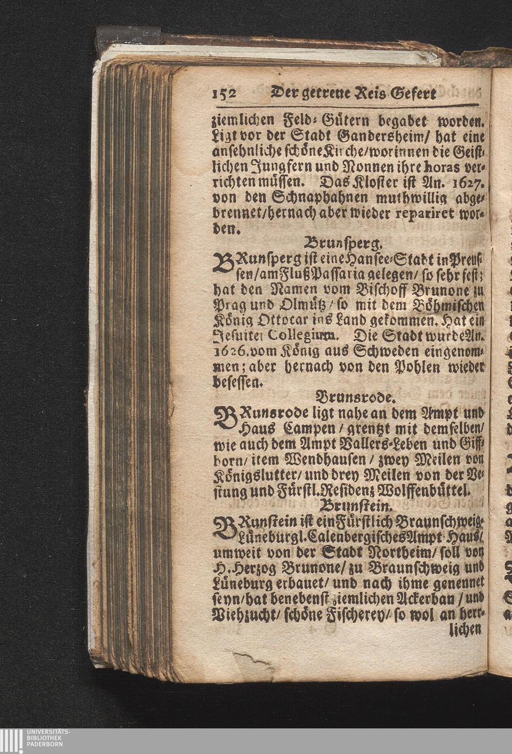 Der getreue Reiß-Gefert durch Ober- und Nieder-Teutschland : Das ist: Grundrichtige und ausführliche Abhandlung derer jenigen Residenzien/ Städte/ Schlösser/ Vestungen/ Städtlein und nahmhafften Markflecken/ welche so wol in Ober- als Nieder-Teutschland/ einem Reisenden sich hin und wieder vorstellig machen und zwar solcher Gestalt/ daß darinn derer Ursprung/ Aufnahm/ Fortification/ Raritäten/ herrliche Gebäue/ und Glück- und Unglücks-Fälle bis auf gegenwärtige Zeit fortgesetzt enthalten. Dabey auch noch über das ein absonderlicher kurz-gefasster Weegweiser angehänget zu finden/ worinnen klärlich zu sehen, wie viel Meilen ein Ort von dem andern entlegen. Alles aus denen bewährtesten Scribenten hervorgesuchet/ zum Nutz-Ergötzen mitgetheilet ...