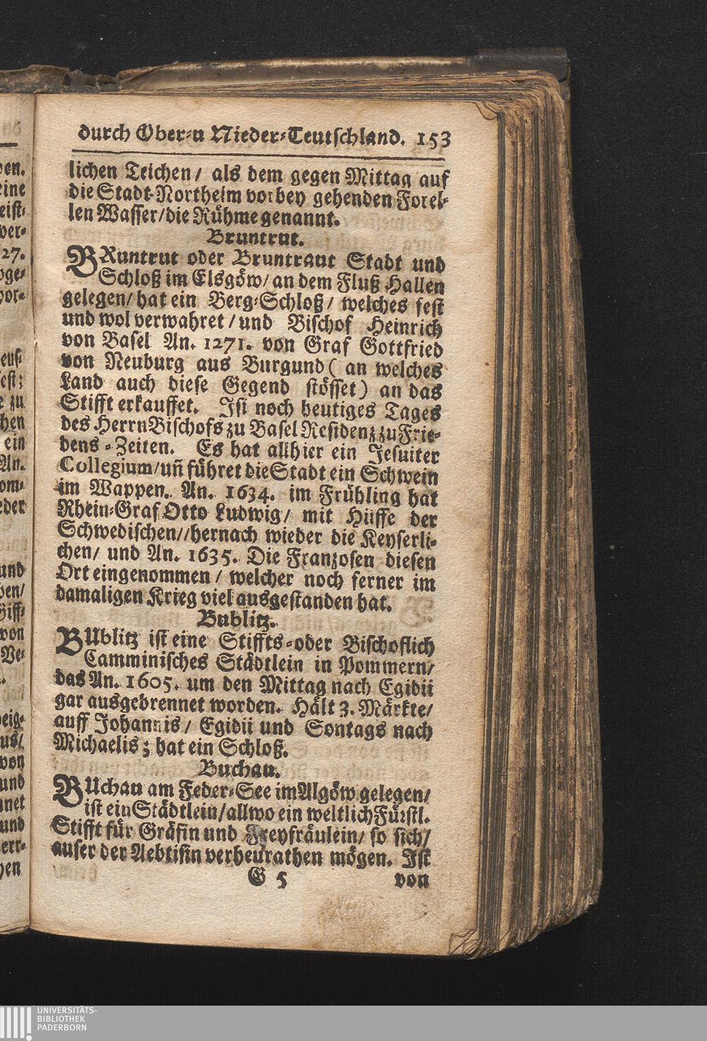 Der getreue Reiß-Gefert durch Ober- und Nieder-Teutschland : Das ist: Grundrichtige und ausführliche Abhandlung derer jenigen Residenzien/ Städte/ Schlösser/ Vestungen/ Städtlein und nahmhafften Markflecken/ welche so wol in Ober- als Nieder-Teutschland/ einem Reisenden sich hin und wieder vorstellig machen und zwar solcher Gestalt/ daß darinn derer Ursprung/ Aufnahm/ Fortification/ Raritäten/ herrliche Gebäue/ und Glück- und Unglücks-Fälle bis auf gegenwärtige Zeit fortgesetzt enthalten. Dabey auch noch über das ein absonderlicher kurz-gefasster Weegweiser angehänget zu finden/ worinnen klärlich zu sehen, wie viel Meilen ein Ort von dem andern entlegen. Alles aus denen bewährtesten Scribenten hervorgesuchet/ zum Nutz-Ergötzen mitgetheilet ...
