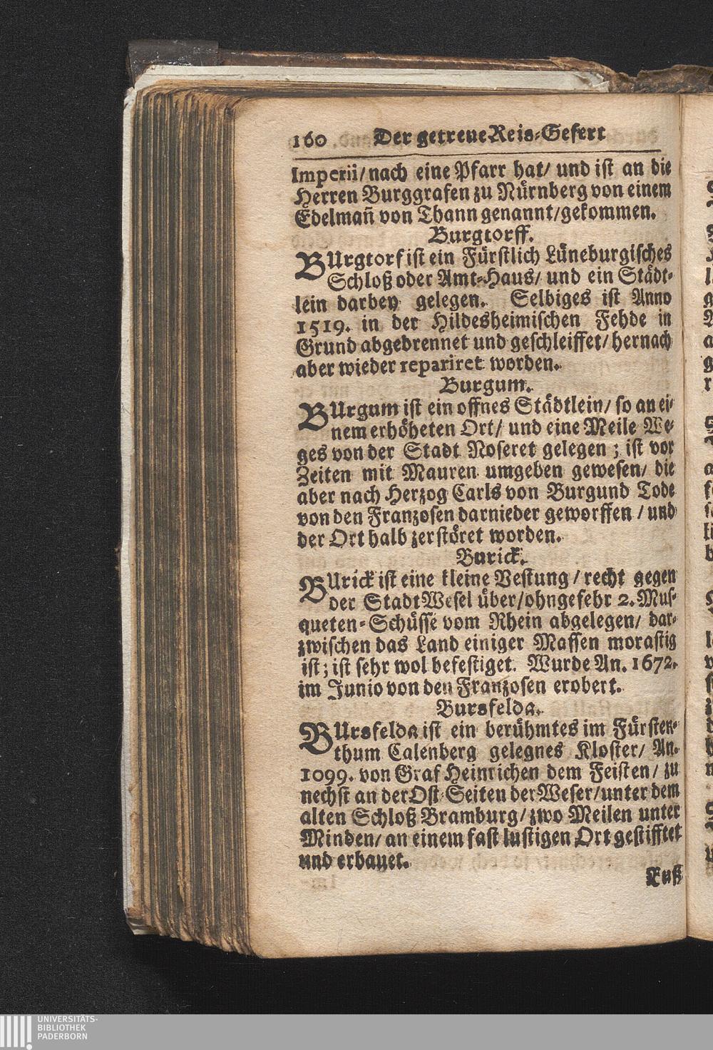 Der getreue Reiß-Gefert durch Ober- und Nieder-Teutschland : Das ist: Grundrichtige und ausführliche Abhandlung derer jenigen Residenzien/ Städte/ Schlösser/ Vestungen/ Städtlein und nahmhafften Markflecken/ welche so wol in Ober- als Nieder-Teutschland/ einem Reisenden sich hin und wieder vorstellig machen und zwar solcher Gestalt/ daß darinn derer Ursprung/ Aufnahm/ Fortification/ Raritäten/ herrliche Gebäue/ und Glück- und Unglücks-Fälle bis auf gegenwärtige Zeit fortgesetzt enthalten. Dabey auch noch über das ein absonderlicher kurz-gefasster Weegweiser angehänget zu finden/ worinnen klärlich zu sehen, wie viel Meilen ein Ort von dem andern entlegen. Alles aus denen bewährtesten Scribenten hervorgesuchet/ zum Nutz-Ergötzen mitgetheilet ...