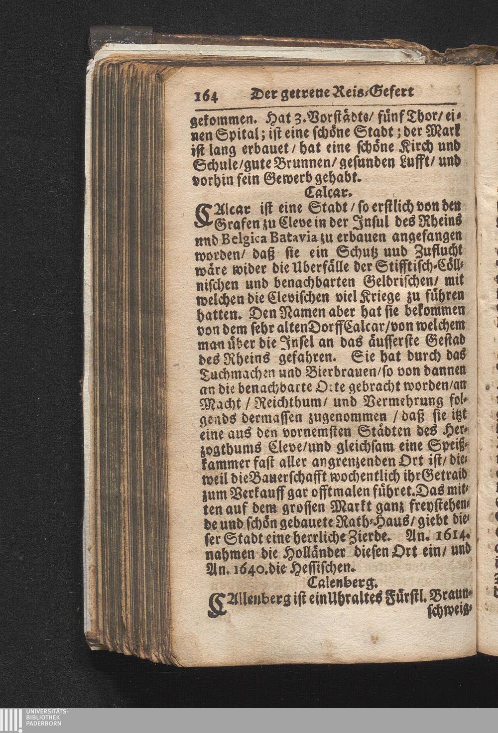 Der getreue Reiß-Gefert durch Ober- und Nieder-Teutschland : Das ist: Grundrichtige und ausführliche Abhandlung derer jenigen Residenzien/ Städte/ Schlösser/ Vestungen/ Städtlein und nahmhafften Markflecken/ welche so wol in Ober- als Nieder-Teutschland/ einem Reisenden sich hin und wieder vorstellig machen und zwar solcher Gestalt/ daß darinn derer Ursprung/ Aufnahm/ Fortification/ Raritäten/ herrliche Gebäue/ und Glück- und Unglücks-Fälle bis auf gegenwärtige Zeit fortgesetzt enthalten. Dabey auch noch über das ein absonderlicher kurz-gefasster Weegweiser angehänget zu finden/ worinnen klärlich zu sehen, wie viel Meilen ein Ort von dem andern entlegen. Alles aus denen bewährtesten Scribenten hervorgesuchet/ zum Nutz-Ergötzen mitgetheilet ...