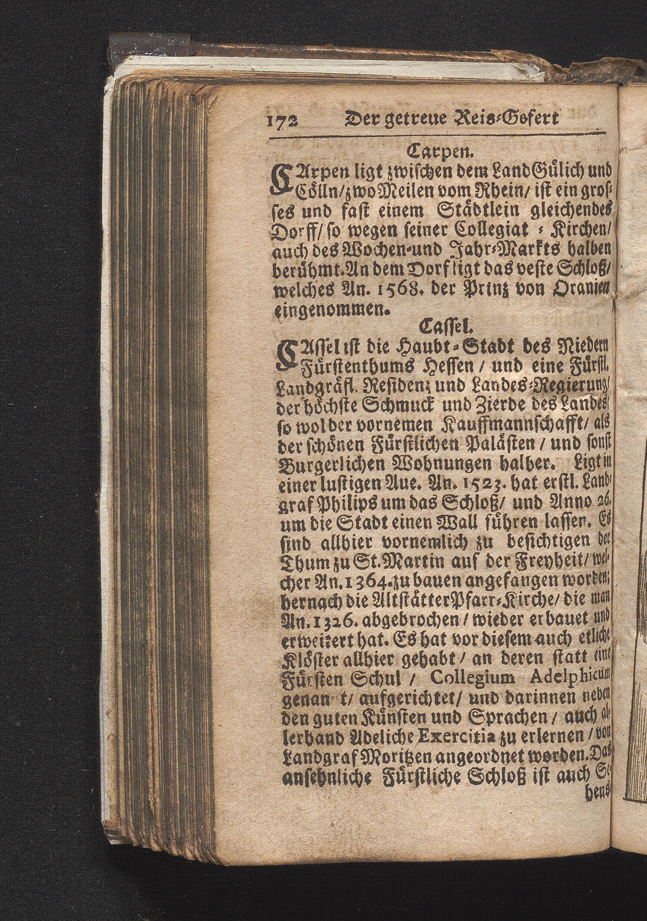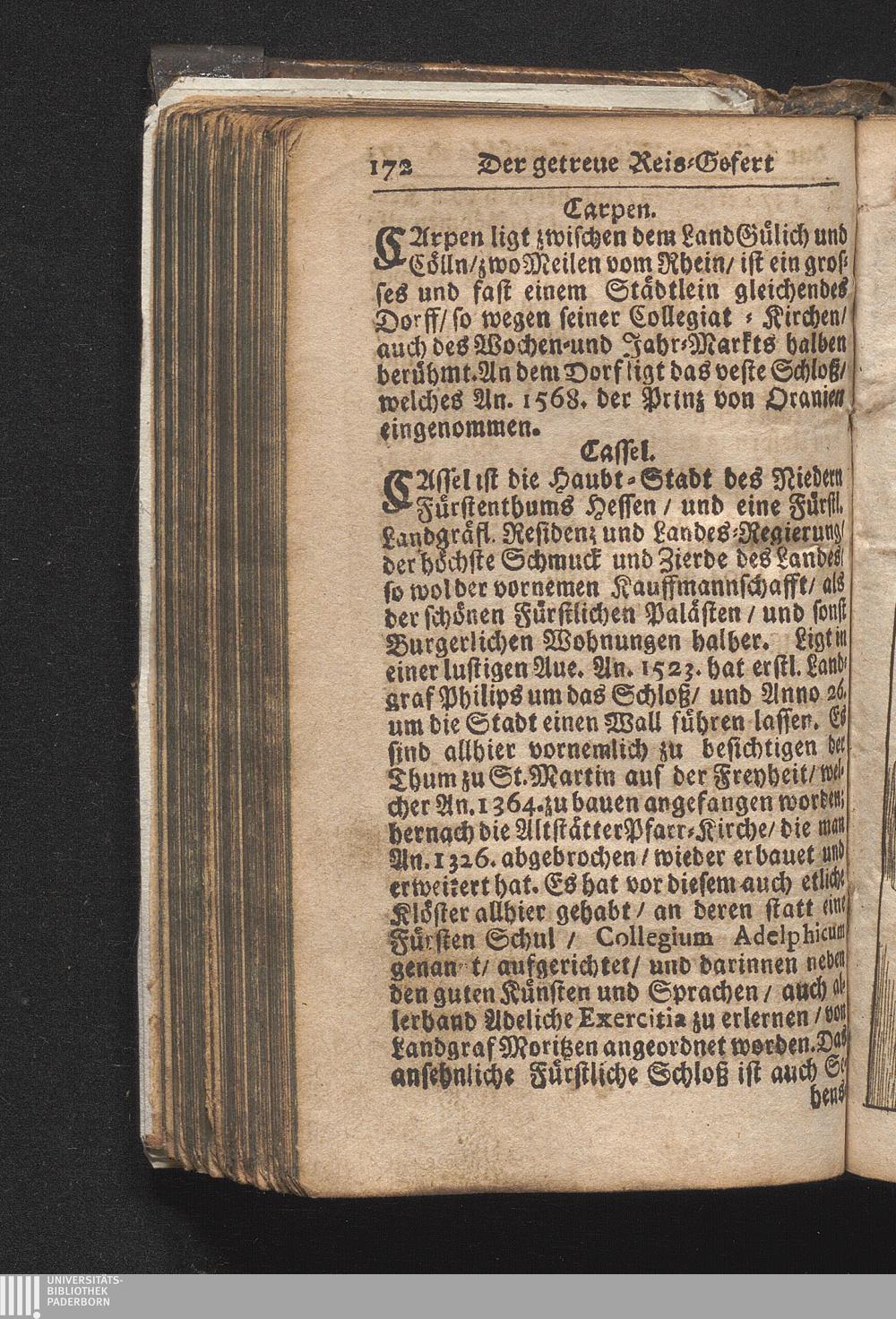 Der getreue Reiß-Gefert durch Ober- und Nieder-Teutschland : Das ist: Grundrichtige und ausführliche Abhandlung derer jenigen Residenzien/ Städte/ Schlösser/ Vestungen/ Städtlein und nahmhafften Markflecken/ welche so wol in Ober- als Nieder-Teutschland/ einem Reisenden sich hin und wieder vorstellig machen und zwar solcher Gestalt/ daß darinn derer Ursprung/ Aufnahm/ Fortification/ Raritäten/ herrliche Gebäue/ und Glück- und Unglücks-Fälle bis auf gegenwärtige Zeit fortgesetzt enthalten. Dabey auch noch über das ein absonderlicher kurz-gefasster Weegweiser angehänget zu finden/ worinnen klärlich zu sehen, wie viel Meilen ein Ort von dem andern entlegen. Alles aus denen bewährtesten Scribenten hervorgesuchet/ zum Nutz-Ergötzen mitgetheilet ...
