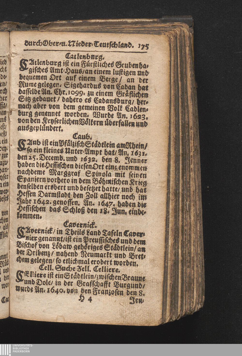 Der getreue Reiß-Gefert durch Ober- und Nieder-Teutschland : Das ist: Grundrichtige und ausführliche Abhandlung derer jenigen Residenzien/ Städte/ Schlösser/ Vestungen/ Städtlein und nahmhafften Markflecken/ welche so wol in Ober- als Nieder-Teutschland/ einem Reisenden sich hin und wieder vorstellig machen und zwar solcher Gestalt/ daß darinn derer Ursprung/ Aufnahm/ Fortification/ Raritäten/ herrliche Gebäue/ und Glück- und Unglücks-Fälle bis auf gegenwärtige Zeit fortgesetzt enthalten. Dabey auch noch über das ein absonderlicher kurz-gefasster Weegweiser angehänget zu finden/ worinnen klärlich zu sehen, wie viel Meilen ein Ort von dem andern entlegen. Alles aus denen bewährtesten Scribenten hervorgesuchet/ zum Nutz-Ergötzen mitgetheilet ...
