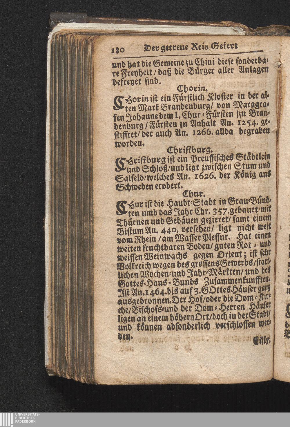 Der getreue Reiß-Gefert durch Ober- und Nieder-Teutschland : Das ist: Grundrichtige und ausführliche Abhandlung derer jenigen Residenzien/ Städte/ Schlösser/ Vestungen/ Städtlein und nahmhafften Markflecken/ welche so wol in Ober- als Nieder-Teutschland/ einem Reisenden sich hin und wieder vorstellig machen und zwar solcher Gestalt/ daß darinn derer Ursprung/ Aufnahm/ Fortification/ Raritäten/ herrliche Gebäue/ und Glück- und Unglücks-Fälle bis auf gegenwärtige Zeit fortgesetzt enthalten. Dabey auch noch über das ein absonderlicher kurz-gefasster Weegweiser angehänget zu finden/ worinnen klärlich zu sehen, wie viel Meilen ein Ort von dem andern entlegen. Alles aus denen bewährtesten Scribenten hervorgesuchet/ zum Nutz-Ergötzen mitgetheilet ...