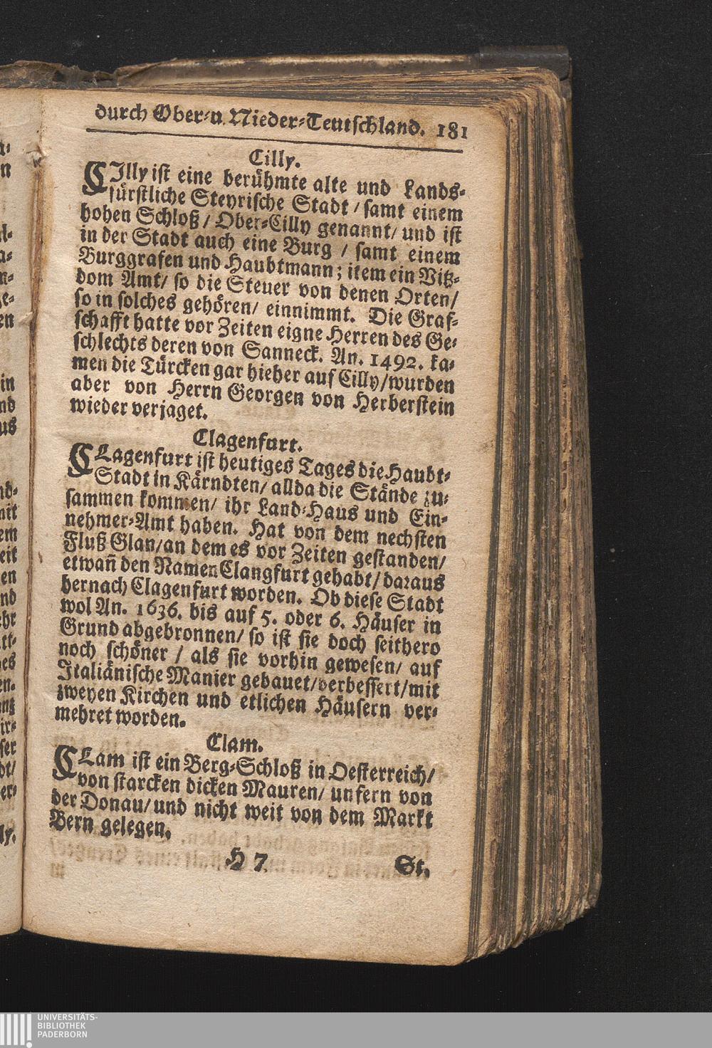 Der getreue Reiß-Gefert durch Ober- und Nieder-Teutschland : Das ist: Grundrichtige und ausführliche Abhandlung derer jenigen Residenzien/ Städte/ Schlösser/ Vestungen/ Städtlein und nahmhafften Markflecken/ welche so wol in Ober- als Nieder-Teutschland/ einem Reisenden sich hin und wieder vorstellig machen und zwar solcher Gestalt/ daß darinn derer Ursprung/ Aufnahm/ Fortification/ Raritäten/ herrliche Gebäue/ und Glück- und Unglücks-Fälle bis auf gegenwärtige Zeit fortgesetzt enthalten. Dabey auch noch über das ein absonderlicher kurz-gefasster Weegweiser angehänget zu finden/ worinnen klärlich zu sehen, wie viel Meilen ein Ort von dem andern entlegen. Alles aus denen bewährtesten Scribenten hervorgesuchet/ zum Nutz-Ergötzen mitgetheilet ...
