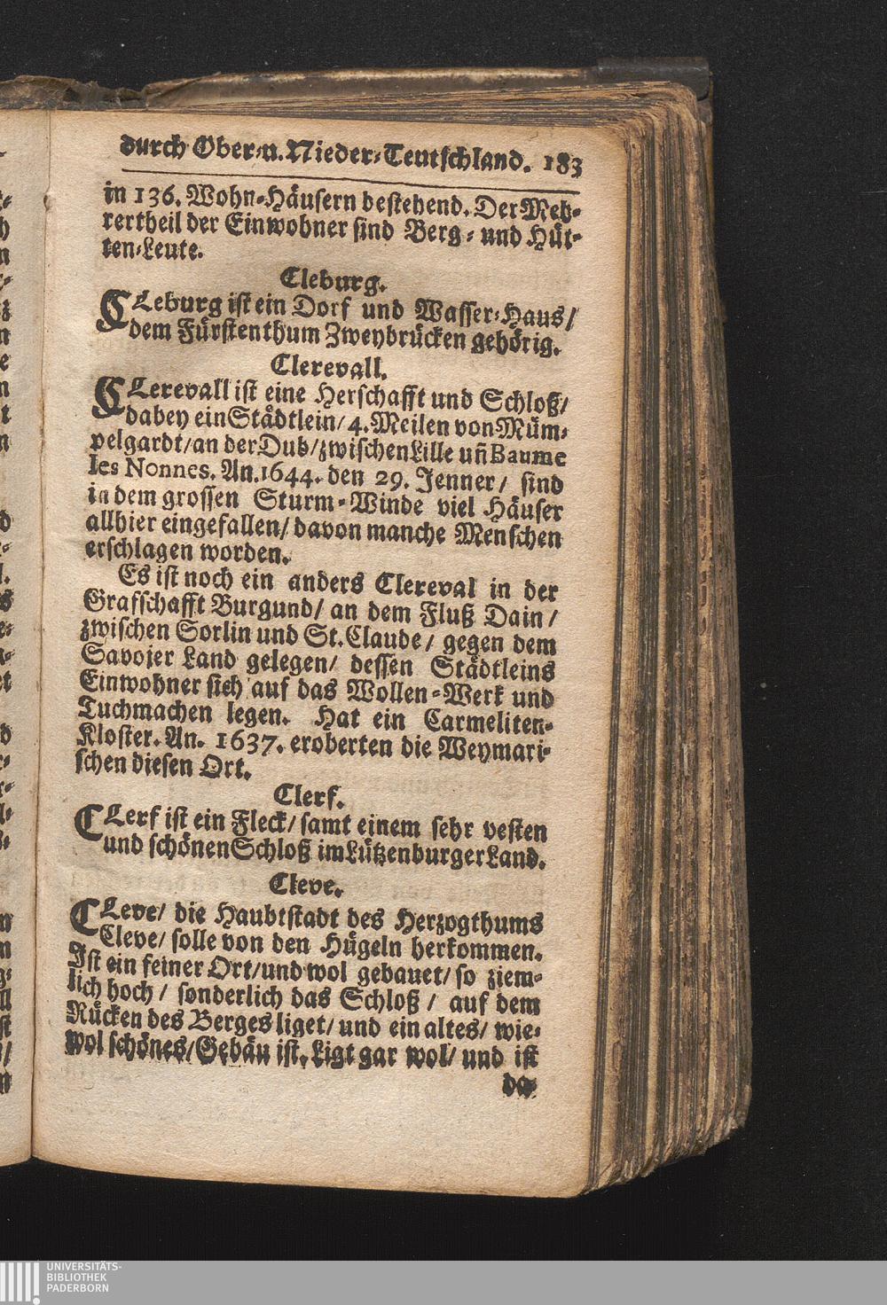 Der getreue Reiß-Gefert durch Ober- und Nieder-Teutschland : Das ist: Grundrichtige und ausführliche Abhandlung derer jenigen Residenzien/ Städte/ Schlösser/ Vestungen/ Städtlein und nahmhafften Markflecken/ welche so wol in Ober- als Nieder-Teutschland/ einem Reisenden sich hin und wieder vorstellig machen und zwar solcher Gestalt/ daß darinn derer Ursprung/ Aufnahm/ Fortification/ Raritäten/ herrliche Gebäue/ und Glück- und Unglücks-Fälle bis auf gegenwärtige Zeit fortgesetzt enthalten. Dabey auch noch über das ein absonderlicher kurz-gefasster Weegweiser angehänget zu finden/ worinnen klärlich zu sehen, wie viel Meilen ein Ort von dem andern entlegen. Alles aus denen bewährtesten Scribenten hervorgesuchet/ zum Nutz-Ergötzen mitgetheilet ...