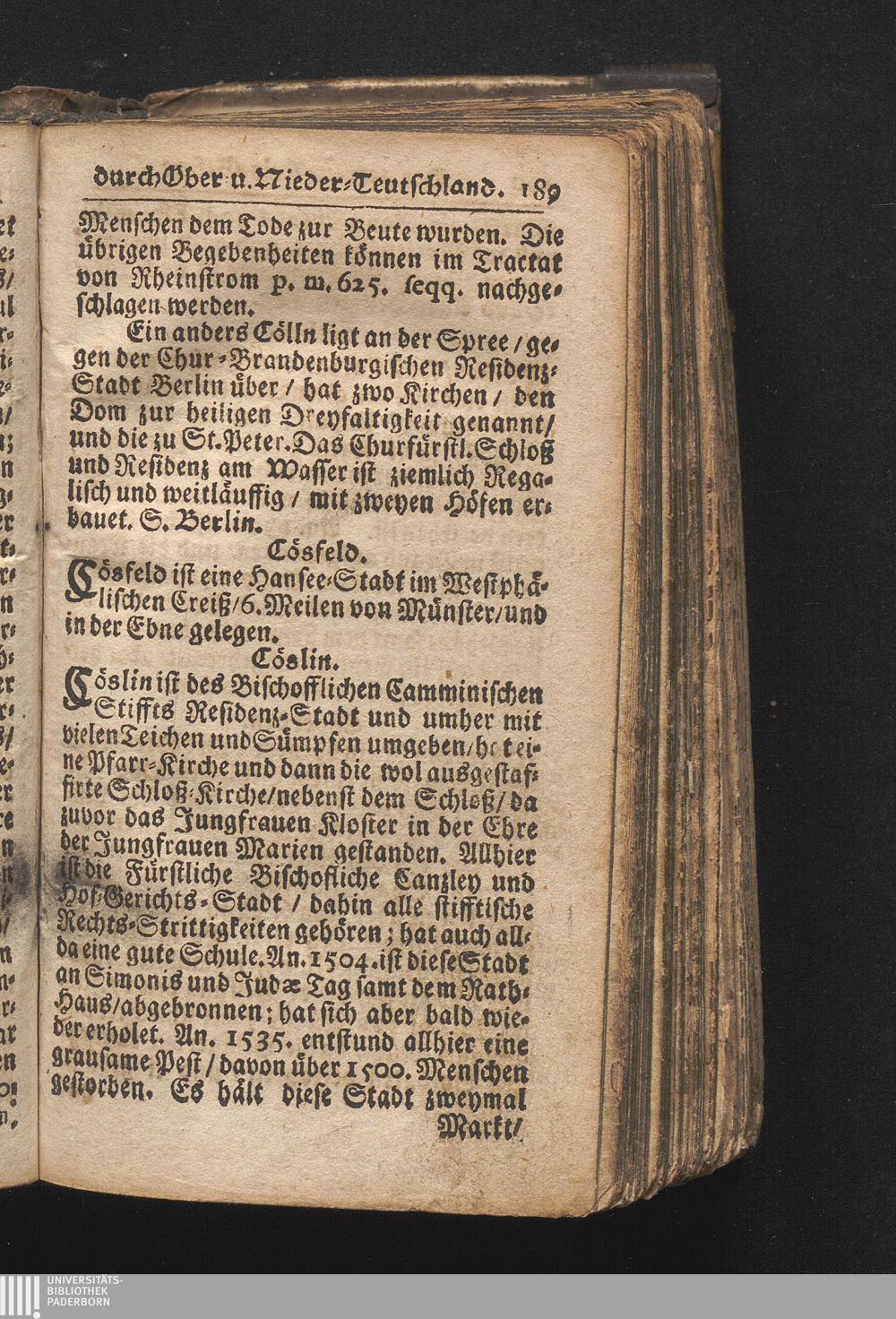 Der getreue Reiß-Gefert durch Ober- und Nieder-Teutschland : Das ist: Grundrichtige und ausführliche Abhandlung derer jenigen Residenzien/ Städte/ Schlösser/ Vestungen/ Städtlein und nahmhafften Markflecken/ welche so wol in Ober- als Nieder-Teutschland/ einem Reisenden sich hin und wieder vorstellig machen und zwar solcher Gestalt/ daß darinn derer Ursprung/ Aufnahm/ Fortification/ Raritäten/ herrliche Gebäue/ und Glück- und Unglücks-Fälle bis auf gegenwärtige Zeit fortgesetzt enthalten. Dabey auch noch über das ein absonderlicher kurz-gefasster Weegweiser angehänget zu finden/ worinnen klärlich zu sehen, wie viel Meilen ein Ort von dem andern entlegen. Alles aus denen bewährtesten Scribenten hervorgesuchet/ zum Nutz-Ergötzen mitgetheilet ...
