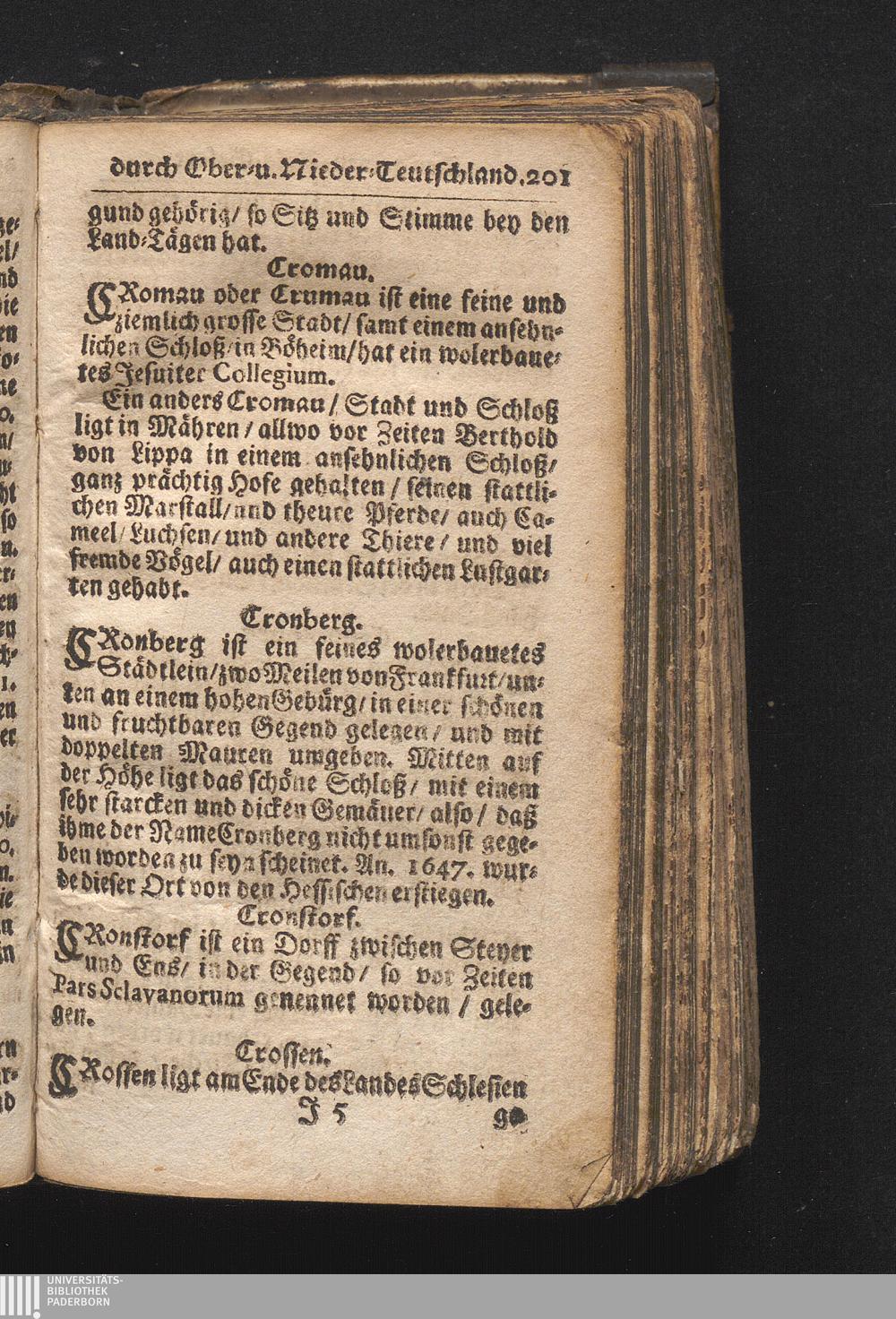 Der getreue Reiß-Gefert durch Ober- und Nieder-Teutschland : Das ist: Grundrichtige und ausführliche Abhandlung derer jenigen Residenzien/ Städte/ Schlösser/ Vestungen/ Städtlein und nahmhafften Markflecken/ welche so wol in Ober- als Nieder-Teutschland/ einem Reisenden sich hin und wieder vorstellig machen und zwar solcher Gestalt/ daß darinn derer Ursprung/ Aufnahm/ Fortification/ Raritäten/ herrliche Gebäue/ und Glück- und Unglücks-Fälle bis auf gegenwärtige Zeit fortgesetzt enthalten. Dabey auch noch über das ein absonderlicher kurz-gefasster Weegweiser angehänget zu finden/ worinnen klärlich zu sehen, wie viel Meilen ein Ort von dem andern entlegen. Alles aus denen bewährtesten Scribenten hervorgesuchet/ zum Nutz-Ergötzen mitgetheilet ...