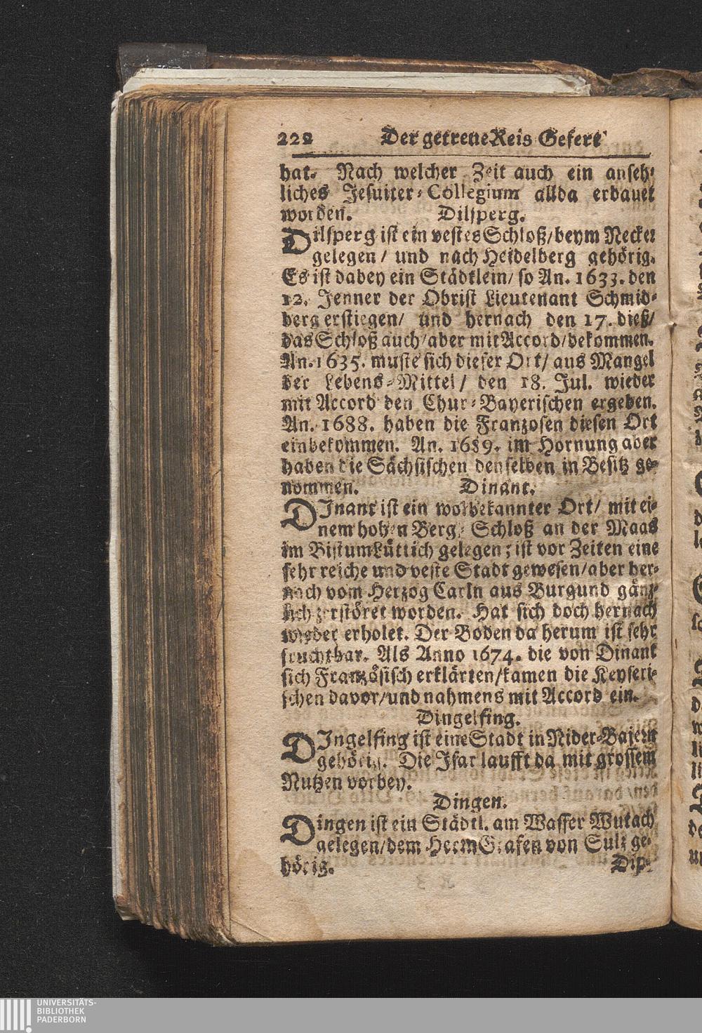 Der getreue Reiß-Gefert durch Ober- und Nieder-Teutschland : Das ist: Grundrichtige und ausführliche Abhandlung derer jenigen Residenzien/ Städte/ Schlösser/ Vestungen/ Städtlein und nahmhafften Markflecken/ welche so wol in Ober- als Nieder-Teutschland/ einem Reisenden sich hin und wieder vorstellig machen und zwar solcher Gestalt/ daß darinn derer Ursprung/ Aufnahm/ Fortification/ Raritäten/ herrliche Gebäue/ und Glück- und Unglücks-Fälle bis auf gegenwärtige Zeit fortgesetzt enthalten. Dabey auch noch über das ein absonderlicher kurz-gefasster Weegweiser angehänget zu finden/ worinnen klärlich zu sehen, wie viel Meilen ein Ort von dem andern entlegen. Alles aus denen bewährtesten Scribenten hervorgesuchet/ zum Nutz-Ergötzen mitgetheilet ...