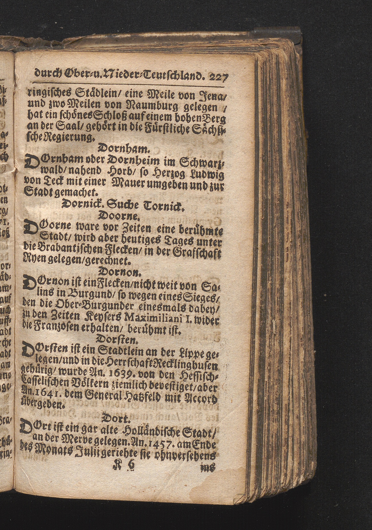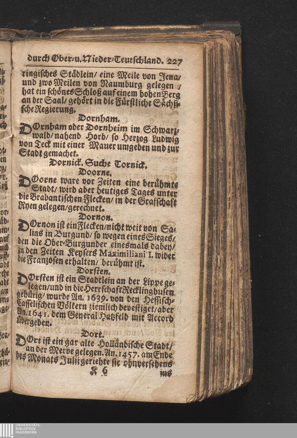 Der getreue Reiß-Gefert durch Ober- und Nieder-Teutschland : Das ist: Grundrichtige und ausführliche Abhandlung derer jenigen Residenzien/ Städte/ Schlösser/ Vestungen/ Städtlein und nahmhafften Markflecken/ welche so wol in Ober- als Nieder-Teutschland/ einem Reisenden sich hin und wieder vorstellig machen und zwar solcher Gestalt/ daß darinn derer Ursprung/ Aufnahm/ Fortification/ Raritäten/ herrliche Gebäue/ und Glück- und Unglücks-Fälle bis auf gegenwärtige Zeit fortgesetzt enthalten. Dabey auch noch über das ein absonderlicher kurz-gefasster Weegweiser angehänget zu finden/ worinnen klärlich zu sehen, wie viel Meilen ein Ort von dem andern entlegen. Alles aus denen bewährtesten Scribenten hervorgesuchet/ zum Nutz-Ergötzen mitgetheilet ...
