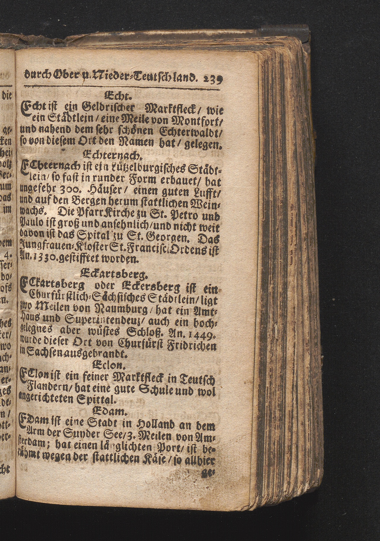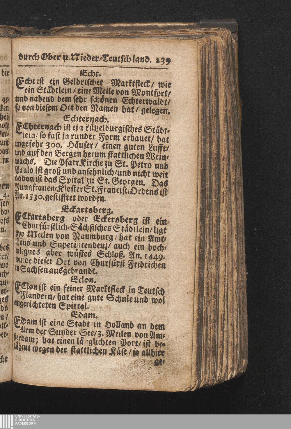 Der getreue Reiß-Gefert durch Ober- und Nieder-Teutschland : Das ist: Grundrichtige und ausführliche Abhandlung derer jenigen Residenzien/ Städte/ Schlösser/ Vestungen/ Städtlein und nahmhafften Markflecken/ welche so wol in Ober- als Nieder-Teutschland/ einem Reisenden sich hin und wieder vorstellig machen und zwar solcher Gestalt/ daß darinn derer Ursprung/ Aufnahm/ Fortification/ Raritäten/ herrliche Gebäue/ und Glück- und Unglücks-Fälle bis auf gegenwärtige Zeit fortgesetzt enthalten. Dabey auch noch über das ein absonderlicher kurz-gefasster Weegweiser angehänget zu finden/ worinnen klärlich zu sehen, wie viel Meilen ein Ort von dem andern entlegen. Alles aus denen bewährtesten Scribenten hervorgesuchet/ zum Nutz-Ergötzen mitgetheilet ...