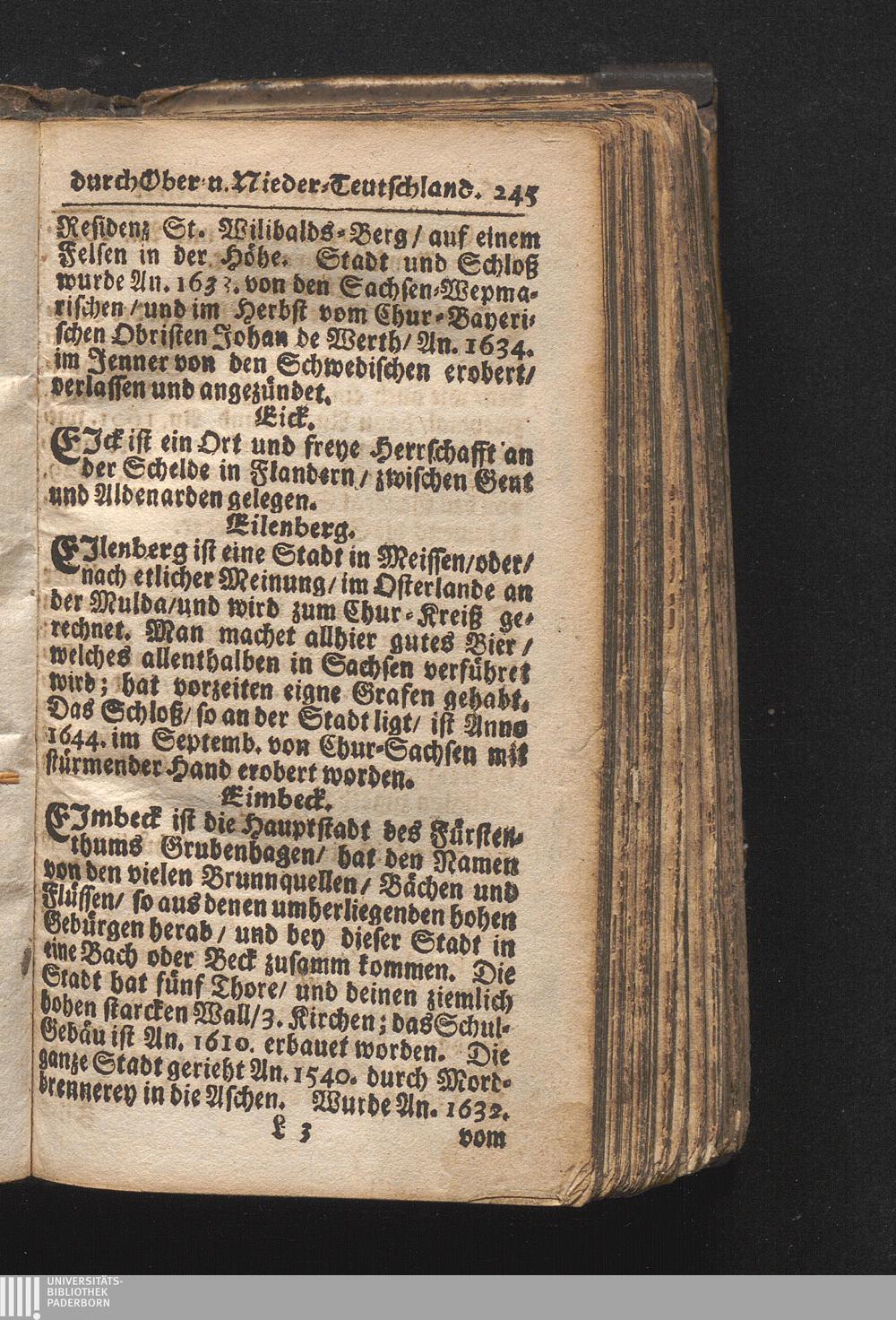 Der getreue Reiß-Gefert durch Ober- und Nieder-Teutschland : Das ist: Grundrichtige und ausführliche Abhandlung derer jenigen Residenzien/ Städte/ Schlösser/ Vestungen/ Städtlein und nahmhafften Markflecken/ welche so wol in Ober- als Nieder-Teutschland/ einem Reisenden sich hin und wieder vorstellig machen und zwar solcher Gestalt/ daß darinn derer Ursprung/ Aufnahm/ Fortification/ Raritäten/ herrliche Gebäue/ und Glück- und Unglücks-Fälle bis auf gegenwärtige Zeit fortgesetzt enthalten. Dabey auch noch über das ein absonderlicher kurz-gefasster Weegweiser angehänget zu finden/ worinnen klärlich zu sehen, wie viel Meilen ein Ort von dem andern entlegen. Alles aus denen bewährtesten Scribenten hervorgesuchet/ zum Nutz-Ergötzen mitgetheilet ...