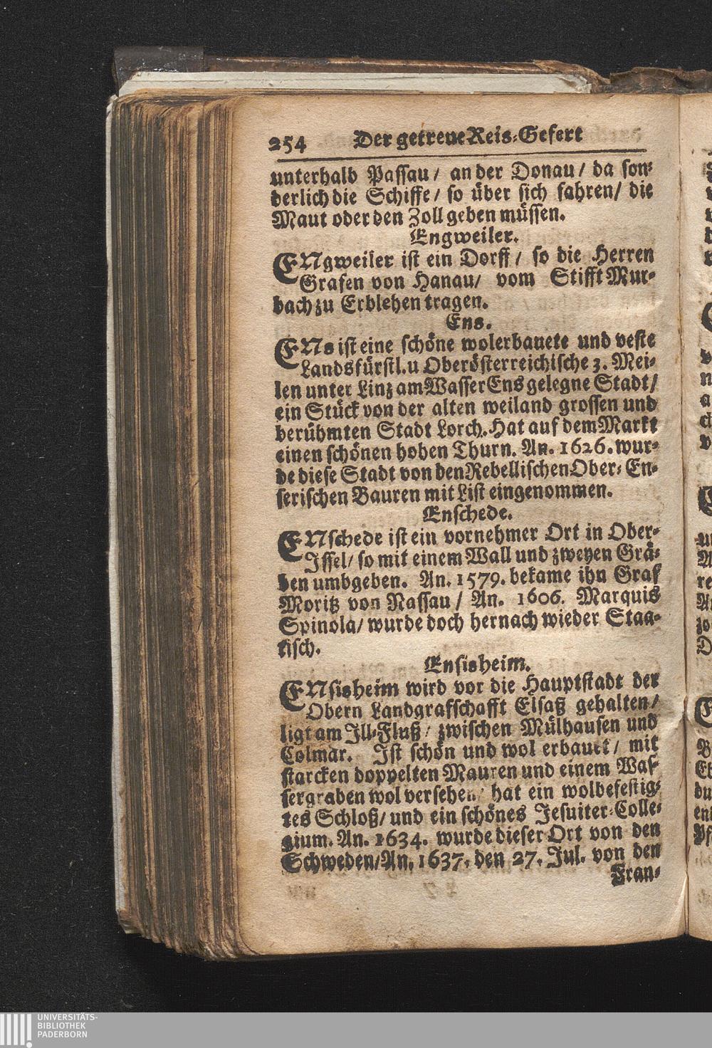 Der getreue Reiß-Gefert durch Ober- und Nieder-Teutschland : Das ist: Grundrichtige und ausführliche Abhandlung derer jenigen Residenzien/ Städte/ Schlösser/ Vestungen/ Städtlein und nahmhafften Markflecken/ welche so wol in Ober- als Nieder-Teutschland/ einem Reisenden sich hin und wieder vorstellig machen und zwar solcher Gestalt/ daß darinn derer Ursprung/ Aufnahm/ Fortification/ Raritäten/ herrliche Gebäue/ und Glück- und Unglücks-Fälle bis auf gegenwärtige Zeit fortgesetzt enthalten. Dabey auch noch über das ein absonderlicher kurz-gefasster Weegweiser angehänget zu finden/ worinnen klärlich zu sehen, wie viel Meilen ein Ort von dem andern entlegen. Alles aus denen bewährtesten Scribenten hervorgesuchet/ zum Nutz-Ergötzen mitgetheilet ...