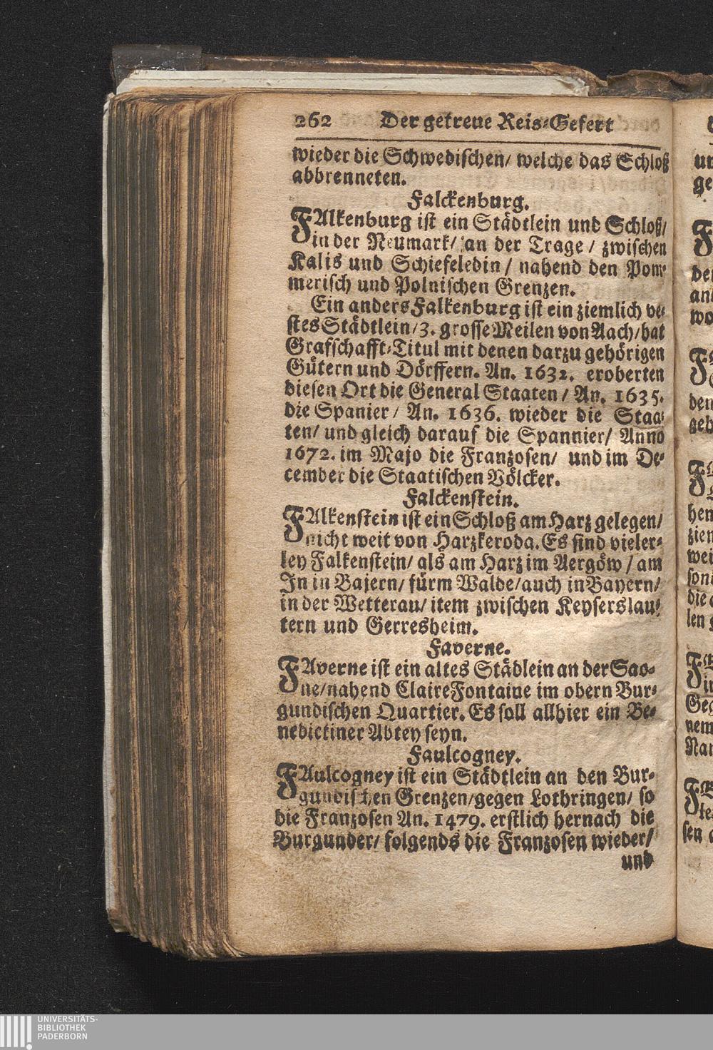 Der getreue Reiß-Gefert durch Ober- und Nieder-Teutschland : Das ist: Grundrichtige und ausführliche Abhandlung derer jenigen Residenzien/ Städte/ Schlösser/ Vestungen/ Städtlein und nahmhafften Markflecken/ welche so wol in Ober- als Nieder-Teutschland/ einem Reisenden sich hin und wieder vorstellig machen und zwar solcher Gestalt/ daß darinn derer Ursprung/ Aufnahm/ Fortification/ Raritäten/ herrliche Gebäue/ und Glück- und Unglücks-Fälle bis auf gegenwärtige Zeit fortgesetzt enthalten. Dabey auch noch über das ein absonderlicher kurz-gefasster Weegweiser angehänget zu finden/ worinnen klärlich zu sehen, wie viel Meilen ein Ort von dem andern entlegen. Alles aus denen bewährtesten Scribenten hervorgesuchet/ zum Nutz-Ergötzen mitgetheilet ...