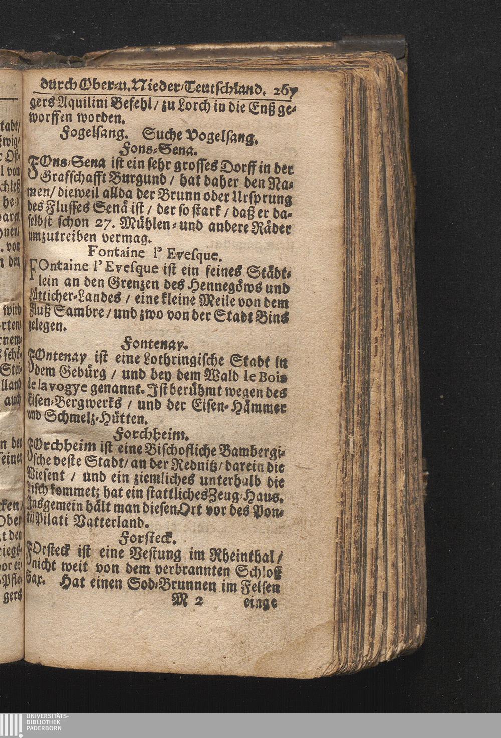 Der getreue Reiß-Gefert durch Ober- und Nieder-Teutschland : Das ist: Grundrichtige und ausführliche Abhandlung derer jenigen Residenzien/ Städte/ Schlösser/ Vestungen/ Städtlein und nahmhafften Markflecken/ welche so wol in Ober- als Nieder-Teutschland/ einem Reisenden sich hin und wieder vorstellig machen und zwar solcher Gestalt/ daß darinn derer Ursprung/ Aufnahm/ Fortification/ Raritäten/ herrliche Gebäue/ und Glück- und Unglücks-Fälle bis auf gegenwärtige Zeit fortgesetzt enthalten. Dabey auch noch über das ein absonderlicher kurz-gefasster Weegweiser angehänget zu finden/ worinnen klärlich zu sehen, wie viel Meilen ein Ort von dem andern entlegen. Alles aus denen bewährtesten Scribenten hervorgesuchet/ zum Nutz-Ergötzen mitgetheilet ...