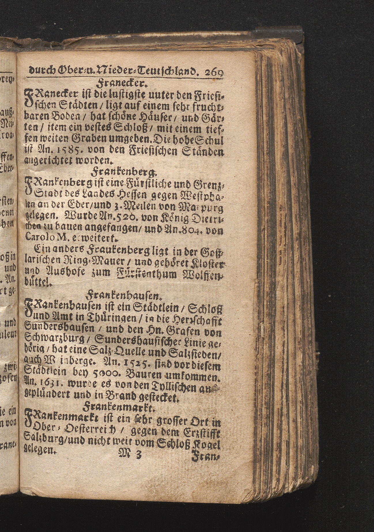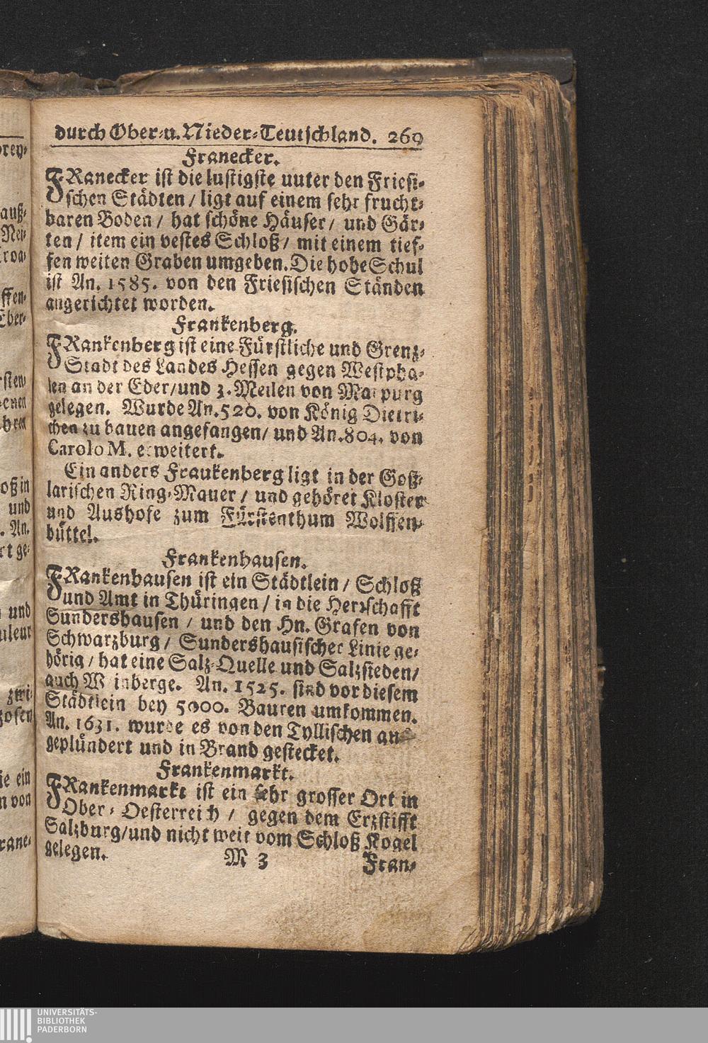 Der getreue Reiß-Gefert durch Ober- und Nieder-Teutschland : Das ist: Grundrichtige und ausführliche Abhandlung derer jenigen Residenzien/ Städte/ Schlösser/ Vestungen/ Städtlein und nahmhafften Markflecken/ welche so wol in Ober- als Nieder-Teutschland/ einem Reisenden sich hin und wieder vorstellig machen und zwar solcher Gestalt/ daß darinn derer Ursprung/ Aufnahm/ Fortification/ Raritäten/ herrliche Gebäue/ und Glück- und Unglücks-Fälle bis auf gegenwärtige Zeit fortgesetzt enthalten. Dabey auch noch über das ein absonderlicher kurz-gefasster Weegweiser angehänget zu finden/ worinnen klärlich zu sehen, wie viel Meilen ein Ort von dem andern entlegen. Alles aus denen bewährtesten Scribenten hervorgesuchet/ zum Nutz-Ergötzen mitgetheilet ...