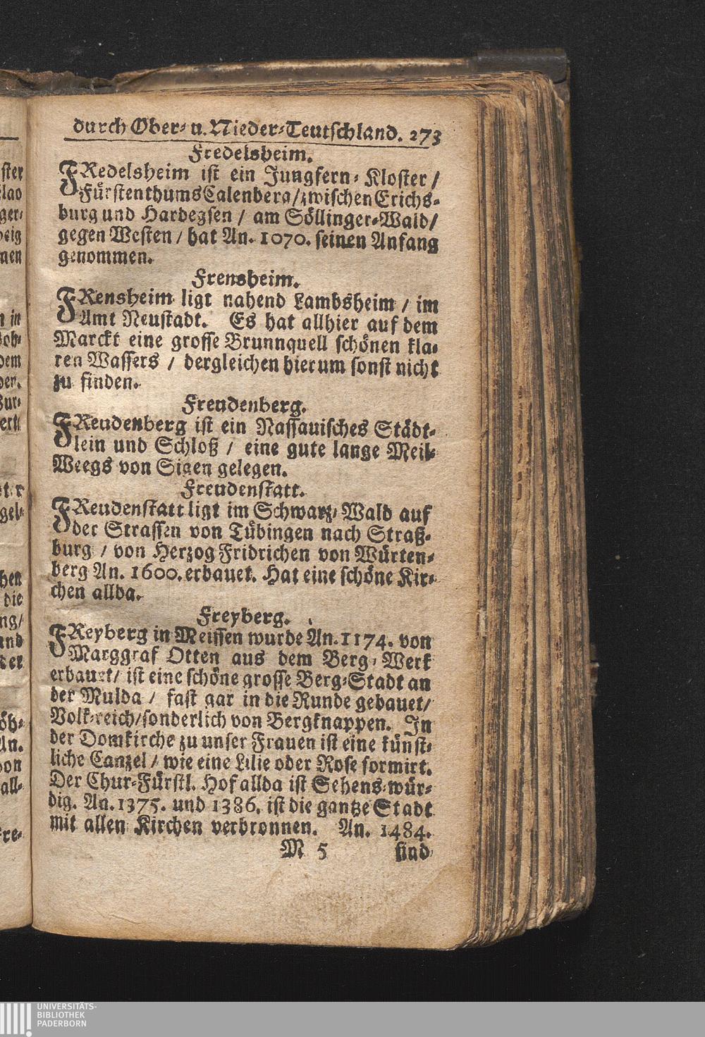 Der getreue Reiß-Gefert durch Ober- und Nieder-Teutschland : Das ist: Grundrichtige und ausführliche Abhandlung derer jenigen Residenzien/ Städte/ Schlösser/ Vestungen/ Städtlein und nahmhafften Markflecken/ welche so wol in Ober- als Nieder-Teutschland/ einem Reisenden sich hin und wieder vorstellig machen und zwar solcher Gestalt/ daß darinn derer Ursprung/ Aufnahm/ Fortification/ Raritäten/ herrliche Gebäue/ und Glück- und Unglücks-Fälle bis auf gegenwärtige Zeit fortgesetzt enthalten. Dabey auch noch über das ein absonderlicher kurz-gefasster Weegweiser angehänget zu finden/ worinnen klärlich zu sehen, wie viel Meilen ein Ort von dem andern entlegen. Alles aus denen bewährtesten Scribenten hervorgesuchet/ zum Nutz-Ergötzen mitgetheilet ...
