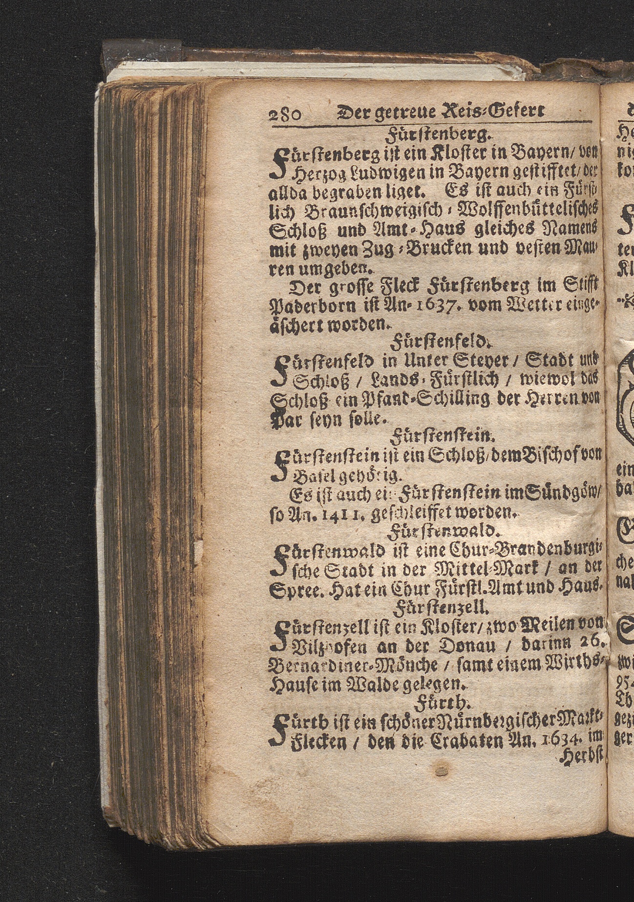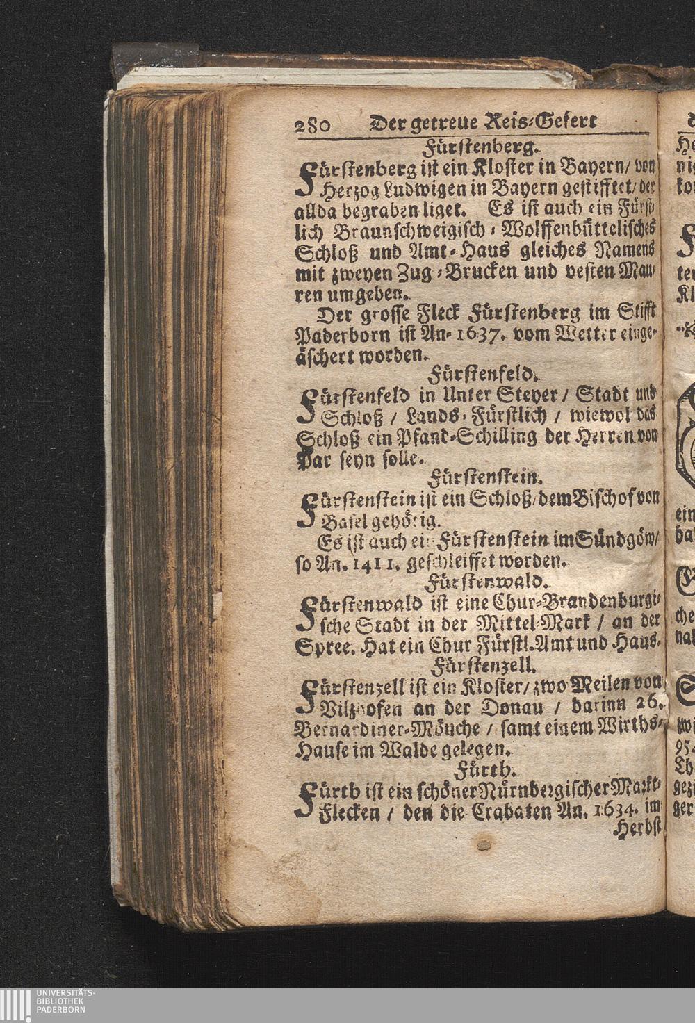 Der getreue Reiß-Gefert durch Ober- und Nieder-Teutschland : Das ist: Grundrichtige und ausführliche Abhandlung derer jenigen Residenzien/ Städte/ Schlösser/ Vestungen/ Städtlein und nahmhafften Markflecken/ welche so wol in Ober- als Nieder-Teutschland/ einem Reisenden sich hin und wieder vorstellig machen und zwar solcher Gestalt/ daß darinn derer Ursprung/ Aufnahm/ Fortification/ Raritäten/ herrliche Gebäue/ und Glück- und Unglücks-Fälle bis auf gegenwärtige Zeit fortgesetzt enthalten. Dabey auch noch über das ein absonderlicher kurz-gefasster Weegweiser angehänget zu finden/ worinnen klärlich zu sehen, wie viel Meilen ein Ort von dem andern entlegen. Alles aus denen bewährtesten Scribenten hervorgesuchet/ zum Nutz-Ergötzen mitgetheilet ...