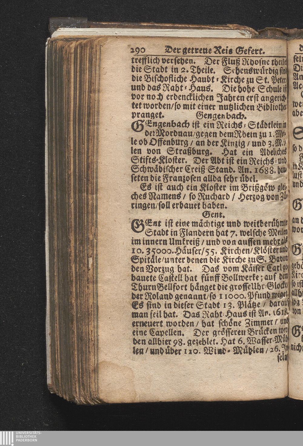 Der getreue Reiß-Gefert durch Ober- und Nieder-Teutschland : Das ist: Grundrichtige und ausführliche Abhandlung derer jenigen Residenzien/ Städte/ Schlösser/ Vestungen/ Städtlein und nahmhafften Markflecken/ welche so wol in Ober- als Nieder-Teutschland/ einem Reisenden sich hin und wieder vorstellig machen und zwar solcher Gestalt/ daß darinn derer Ursprung/ Aufnahm/ Fortification/ Raritäten/ herrliche Gebäue/ und Glück- und Unglücks-Fälle bis auf gegenwärtige Zeit fortgesetzt enthalten. Dabey auch noch über das ein absonderlicher kurz-gefasster Weegweiser angehänget zu finden/ worinnen klärlich zu sehen, wie viel Meilen ein Ort von dem andern entlegen. Alles aus denen bewährtesten Scribenten hervorgesuchet/ zum Nutz-Ergötzen mitgetheilet ...