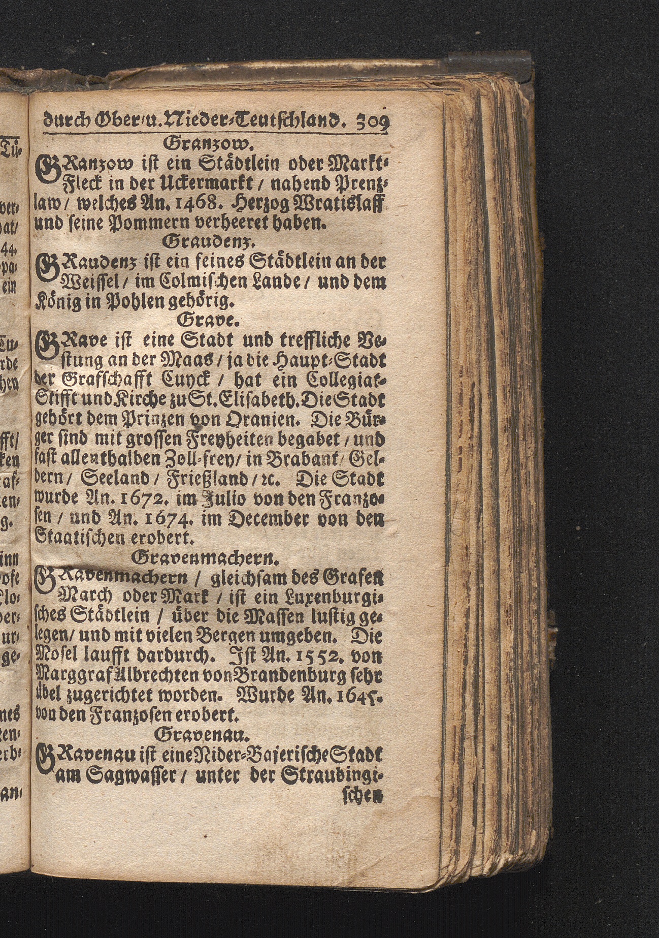 Der getreue Reiß-Gefert durch Ober- und Nieder-Teutschland : Das ist: Grundrichtige und ausführliche Abhandlung derer jenigen Residenzien/ Städte/ Schlösser/ Vestungen/ Städtlein und nahmhafften Markflecken/ welche so wol in Ober- als Nieder-Teutschland/ einem Reisenden sich hin und wieder vorstellig machen und zwar solcher Gestalt/ daß darinn derer Ursprung/ Aufnahm/ Fortification/ Raritäten/ herrliche Gebäue/ und Glück- und Unglücks-Fälle bis auf gegenwärtige Zeit fortgesetzt enthalten. Dabey auch noch über das ein absonderlicher kurz-gefasster Weegweiser angehänget zu finden/ worinnen klärlich zu sehen, wie viel Meilen ein Ort von dem andern entlegen. Alles aus denen bewährtesten Scribenten hervorgesuchet/ zum Nutz-Ergötzen mitgetheilet ...
