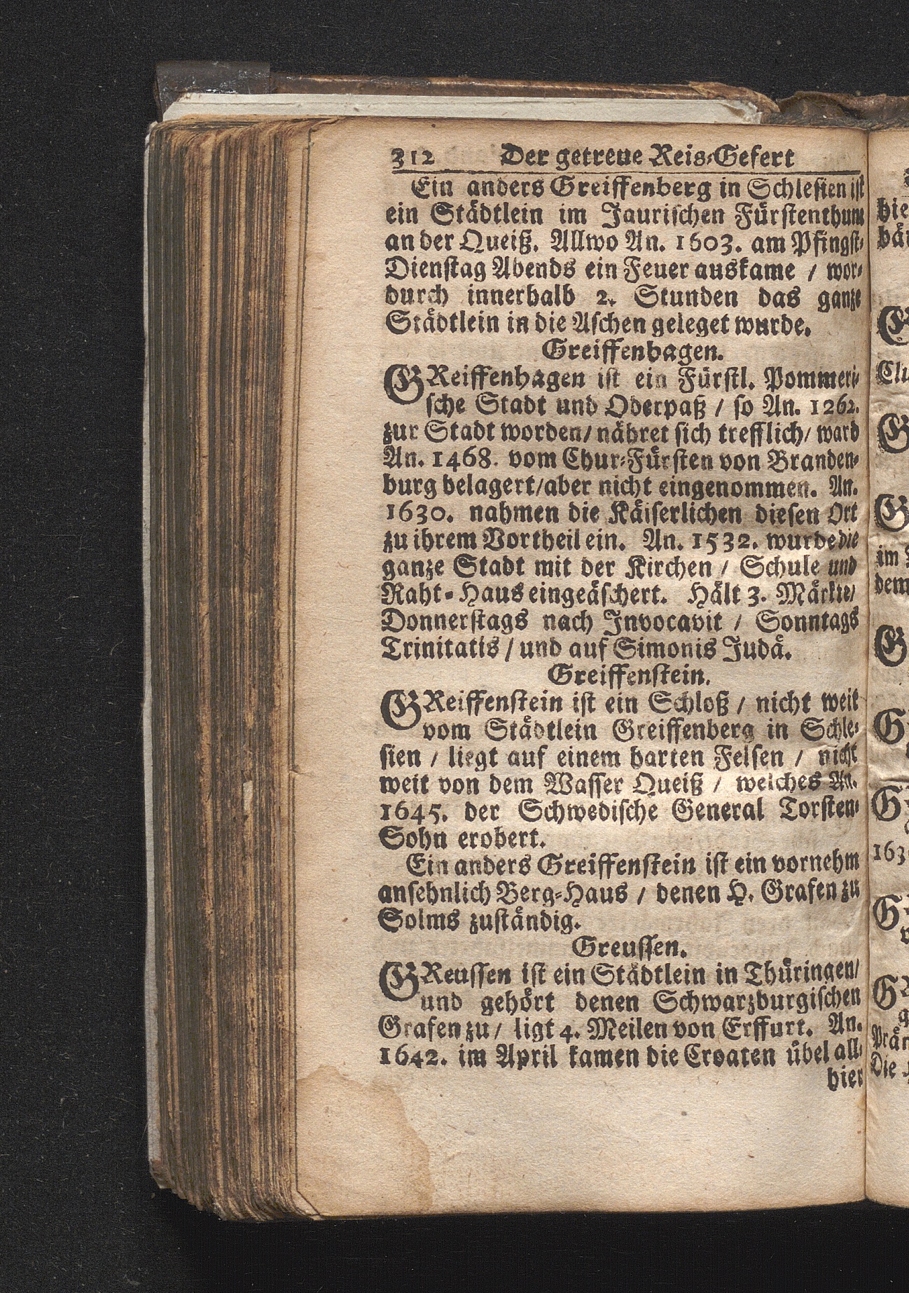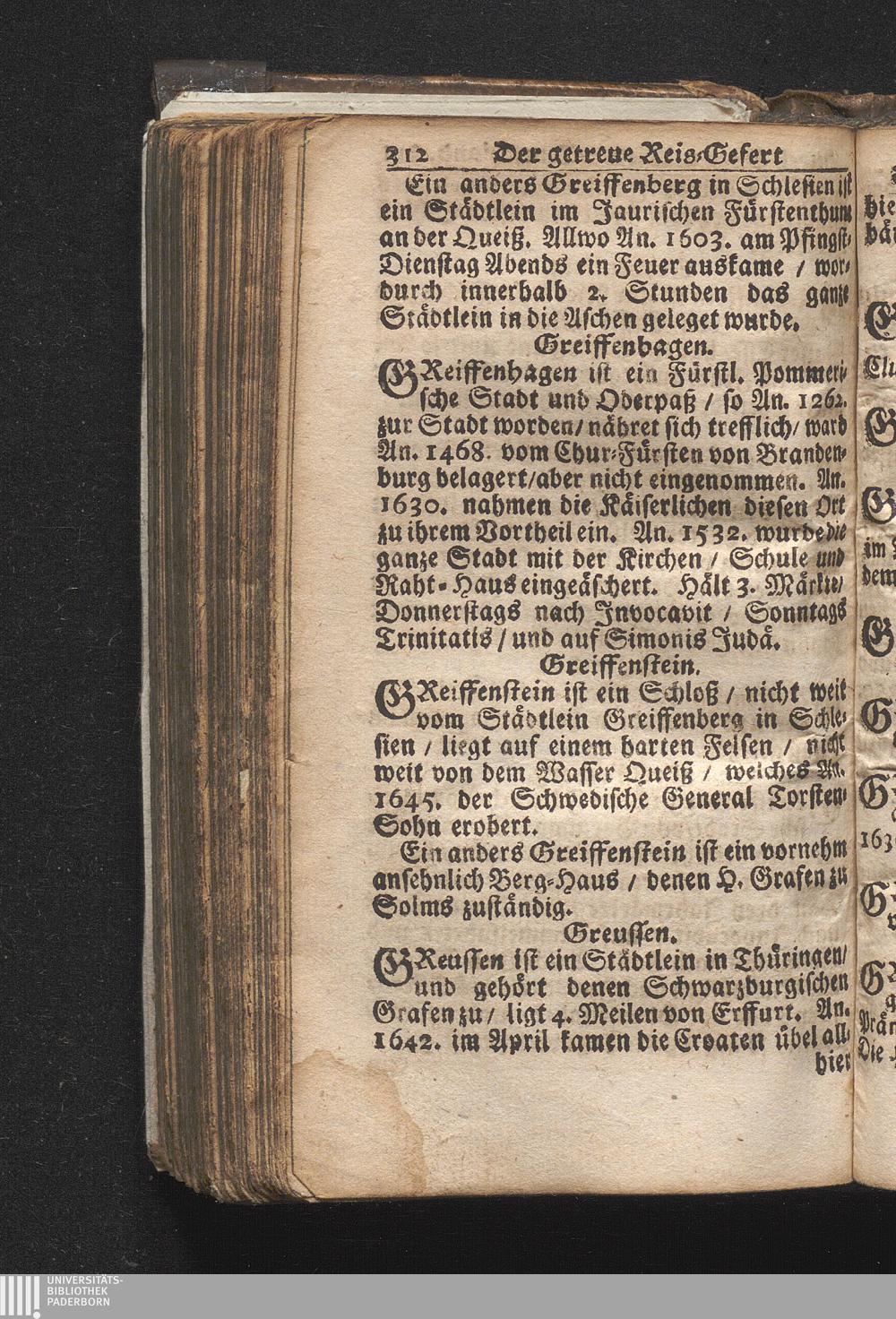 Der getreue Reiß-Gefert durch Ober- und Nieder-Teutschland : Das ist: Grundrichtige und ausführliche Abhandlung derer jenigen Residenzien/ Städte/ Schlösser/ Vestungen/ Städtlein und nahmhafften Markflecken/ welche so wol in Ober- als Nieder-Teutschland/ einem Reisenden sich hin und wieder vorstellig machen und zwar solcher Gestalt/ daß darinn derer Ursprung/ Aufnahm/ Fortification/ Raritäten/ herrliche Gebäue/ und Glück- und Unglücks-Fälle bis auf gegenwärtige Zeit fortgesetzt enthalten. Dabey auch noch über das ein absonderlicher kurz-gefasster Weegweiser angehänget zu finden/ worinnen klärlich zu sehen, wie viel Meilen ein Ort von dem andern entlegen. Alles aus denen bewährtesten Scribenten hervorgesuchet/ zum Nutz-Ergötzen mitgetheilet ...
