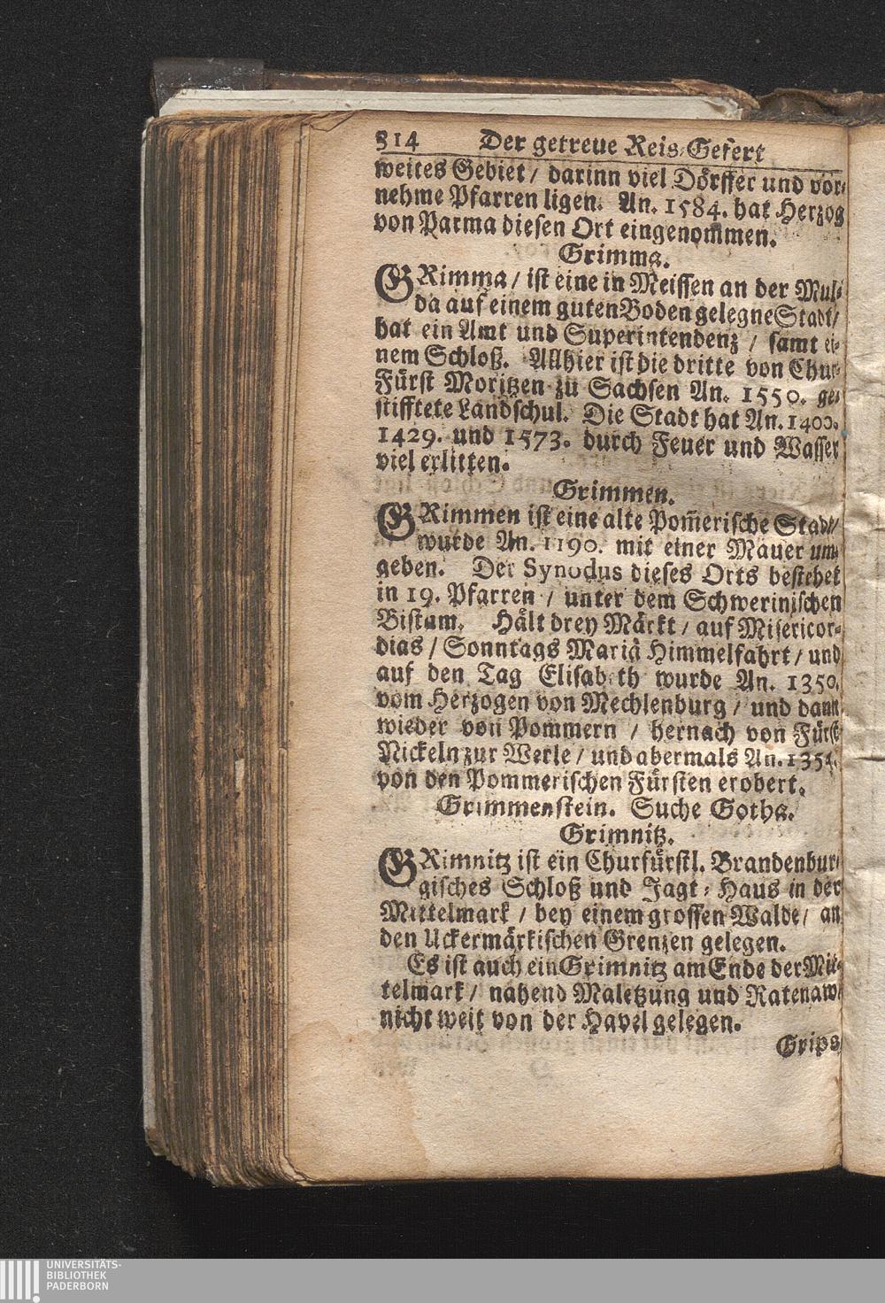 Der getreue Reiß-Gefert durch Ober- und Nieder-Teutschland : Das ist: Grundrichtige und ausführliche Abhandlung derer jenigen Residenzien/ Städte/ Schlösser/ Vestungen/ Städtlein und nahmhafften Markflecken/ welche so wol in Ober- als Nieder-Teutschland/ einem Reisenden sich hin und wieder vorstellig machen und zwar solcher Gestalt/ daß darinn derer Ursprung/ Aufnahm/ Fortification/ Raritäten/ herrliche Gebäue/ und Glück- und Unglücks-Fälle bis auf gegenwärtige Zeit fortgesetzt enthalten. Dabey auch noch über das ein absonderlicher kurz-gefasster Weegweiser angehänget zu finden/ worinnen klärlich zu sehen, wie viel Meilen ein Ort von dem andern entlegen. Alles aus denen bewährtesten Scribenten hervorgesuchet/ zum Nutz-Ergötzen mitgetheilet ...
