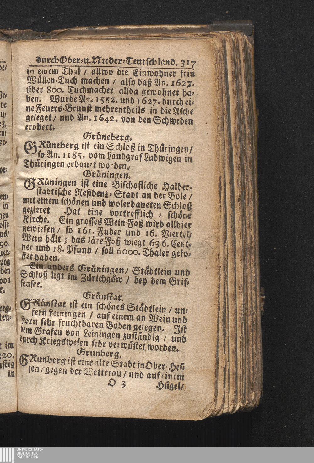 Der getreue Reiß-Gefert durch Ober- und Nieder-Teutschland : Das ist: Grundrichtige und ausführliche Abhandlung derer jenigen Residenzien/ Städte/ Schlösser/ Vestungen/ Städtlein und nahmhafften Markflecken/ welche so wol in Ober- als Nieder-Teutschland/ einem Reisenden sich hin und wieder vorstellig machen und zwar solcher Gestalt/ daß darinn derer Ursprung/ Aufnahm/ Fortification/ Raritäten/ herrliche Gebäue/ und Glück- und Unglücks-Fälle bis auf gegenwärtige Zeit fortgesetzt enthalten. Dabey auch noch über das ein absonderlicher kurz-gefasster Weegweiser angehänget zu finden/ worinnen klärlich zu sehen, wie viel Meilen ein Ort von dem andern entlegen. Alles aus denen bewährtesten Scribenten hervorgesuchet/ zum Nutz-Ergötzen mitgetheilet ...