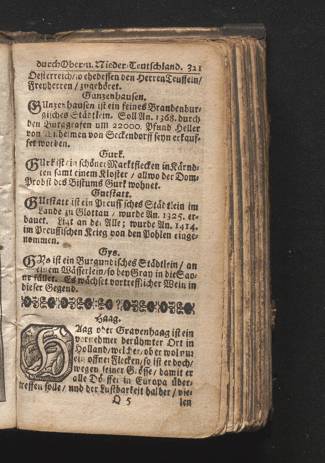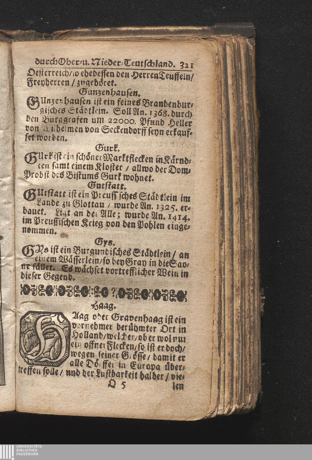 Der getreue Reiß-Gefert durch Ober- und Nieder-Teutschland : Das ist: Grundrichtige und ausführliche Abhandlung derer jenigen Residenzien/ Städte/ Schlösser/ Vestungen/ Städtlein und nahmhafften Markflecken/ welche so wol in Ober- als Nieder-Teutschland/ einem Reisenden sich hin und wieder vorstellig machen und zwar solcher Gestalt/ daß darinn derer Ursprung/ Aufnahm/ Fortification/ Raritäten/ herrliche Gebäue/ und Glück- und Unglücks-Fälle bis auf gegenwärtige Zeit fortgesetzt enthalten. Dabey auch noch über das ein absonderlicher kurz-gefasster Weegweiser angehänget zu finden/ worinnen klärlich zu sehen, wie viel Meilen ein Ort von dem andern entlegen. Alles aus denen bewährtesten Scribenten hervorgesuchet/ zum Nutz-Ergötzen mitgetheilet ...