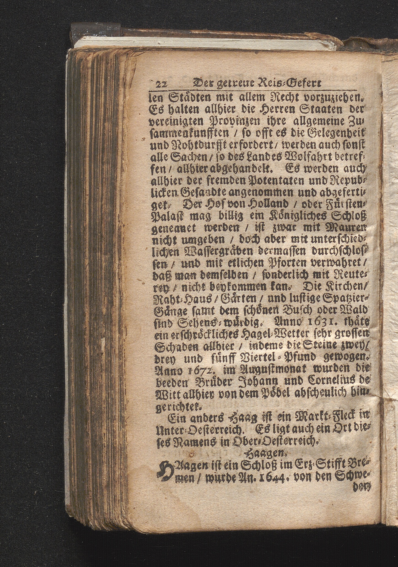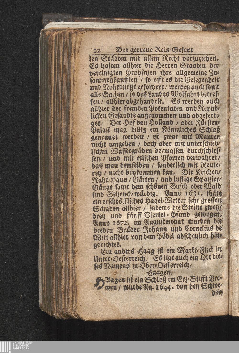 Der getreue Reiß-Gefert durch Ober- und Nieder-Teutschland : Das ist: Grundrichtige und ausführliche Abhandlung derer jenigen Residenzien/ Städte/ Schlösser/ Vestungen/ Städtlein und nahmhafften Markflecken/ welche so wol in Ober- als Nieder-Teutschland/ einem Reisenden sich hin und wieder vorstellig machen und zwar solcher Gestalt/ daß darinn derer Ursprung/ Aufnahm/ Fortification/ Raritäten/ herrliche Gebäue/ und Glück- und Unglücks-Fälle bis auf gegenwärtige Zeit fortgesetzt enthalten. Dabey auch noch über das ein absonderlicher kurz-gefasster Weegweiser angehänget zu finden/ worinnen klärlich zu sehen, wie viel Meilen ein Ort von dem andern entlegen. Alles aus denen bewährtesten Scribenten hervorgesuchet/ zum Nutz-Ergötzen mitgetheilet ...