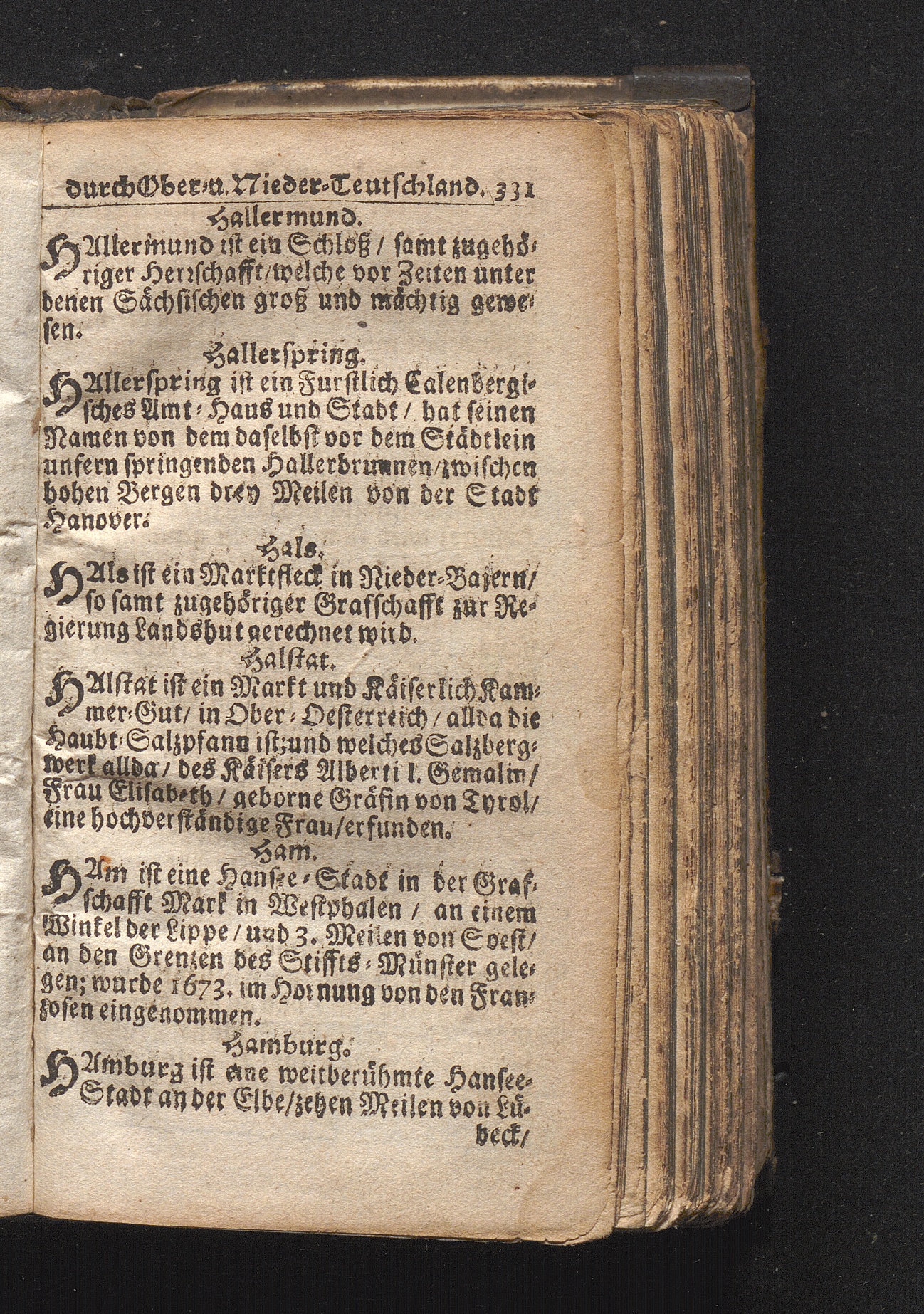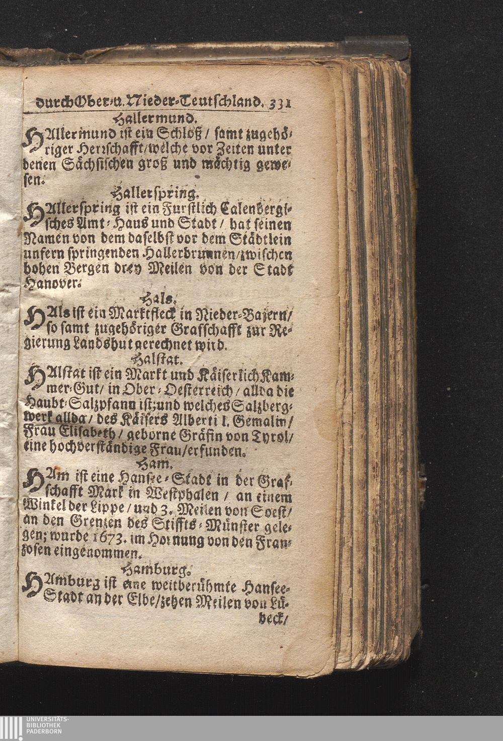 Der getreue Reiß-Gefert durch Ober- und Nieder-Teutschland : Das ist: Grundrichtige und ausführliche Abhandlung derer jenigen Residenzien/ Städte/ Schlösser/ Vestungen/ Städtlein und nahmhafften Markflecken/ welche so wol in Ober- als Nieder-Teutschland/ einem Reisenden sich hin und wieder vorstellig machen und zwar solcher Gestalt/ daß darinn derer Ursprung/ Aufnahm/ Fortification/ Raritäten/ herrliche Gebäue/ und Glück- und Unglücks-Fälle bis auf gegenwärtige Zeit fortgesetzt enthalten. Dabey auch noch über das ein absonderlicher kurz-gefasster Weegweiser angehänget zu finden/ worinnen klärlich zu sehen, wie viel Meilen ein Ort von dem andern entlegen. Alles aus denen bewährtesten Scribenten hervorgesuchet/ zum Nutz-Ergötzen mitgetheilet ...