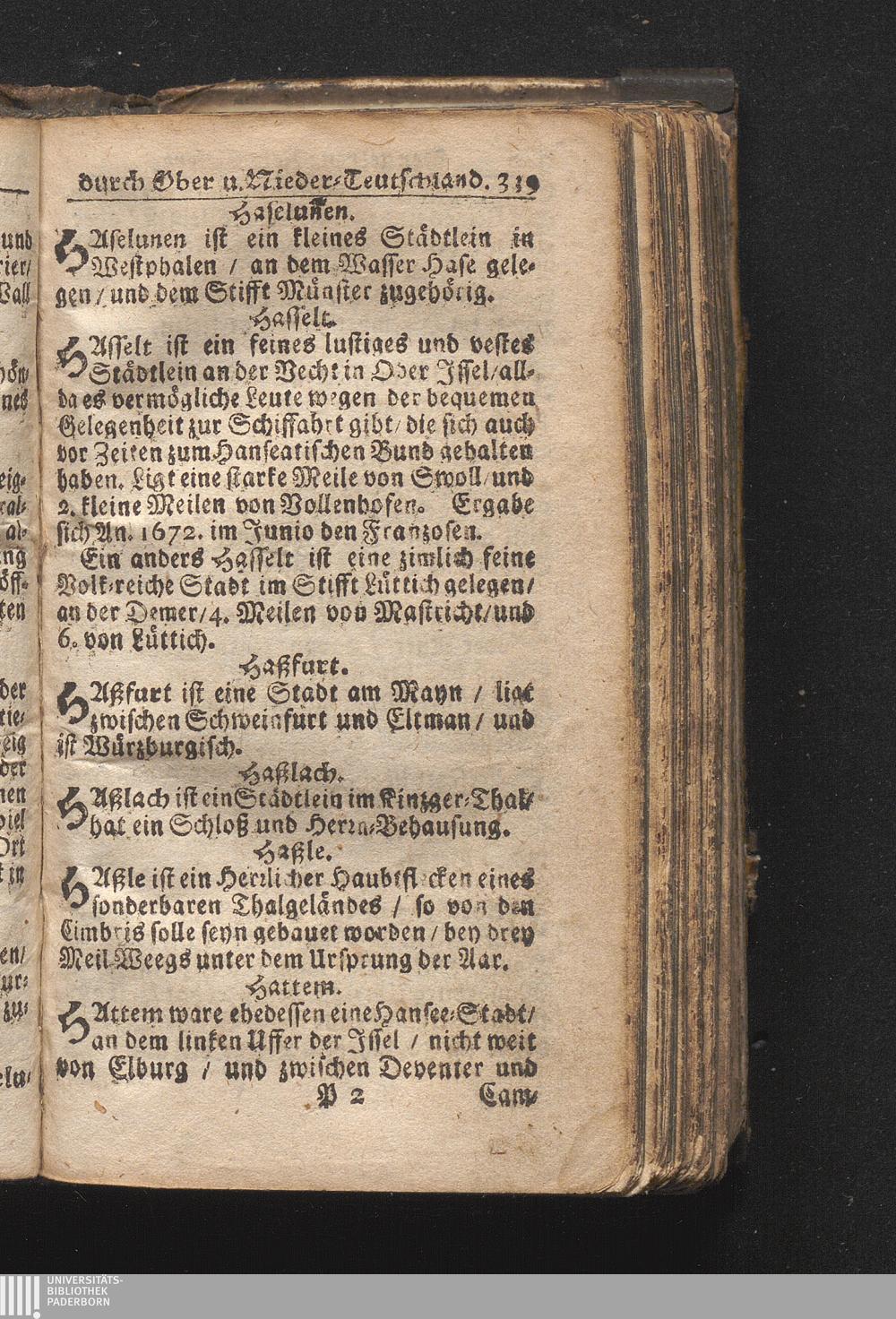 Der getreue Reiß-Gefert durch Ober- und Nieder-Teutschland : Das ist: Grundrichtige und ausführliche Abhandlung derer jenigen Residenzien/ Städte/ Schlösser/ Vestungen/ Städtlein und nahmhafften Markflecken/ welche so wol in Ober- als Nieder-Teutschland/ einem Reisenden sich hin und wieder vorstellig machen und zwar solcher Gestalt/ daß darinn derer Ursprung/ Aufnahm/ Fortification/ Raritäten/ herrliche Gebäue/ und Glück- und Unglücks-Fälle bis auf gegenwärtige Zeit fortgesetzt enthalten. Dabey auch noch über das ein absonderlicher kurz-gefasster Weegweiser angehänget zu finden/ worinnen klärlich zu sehen, wie viel Meilen ein Ort von dem andern entlegen. Alles aus denen bewährtesten Scribenten hervorgesuchet/ zum Nutz-Ergötzen mitgetheilet ...
