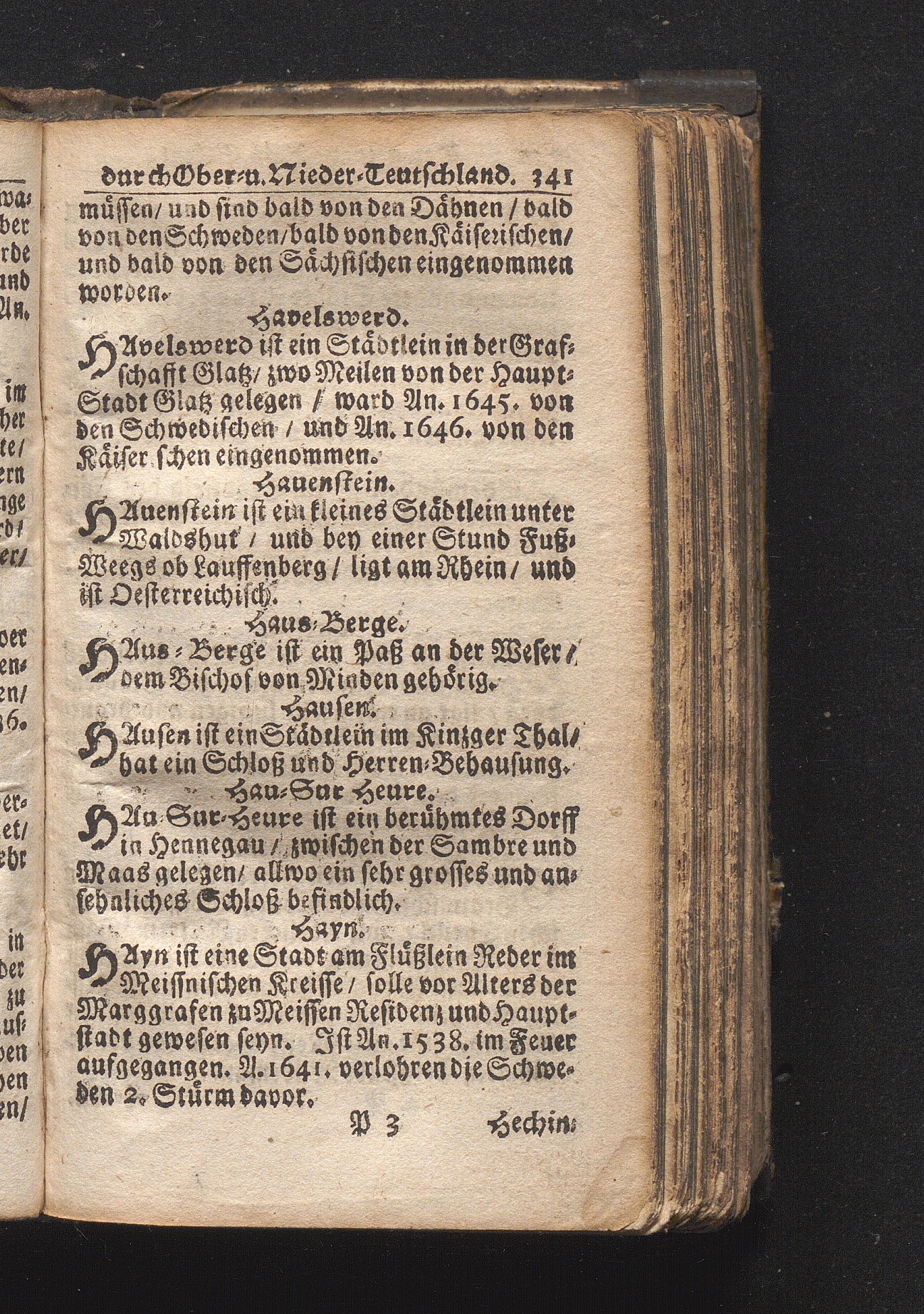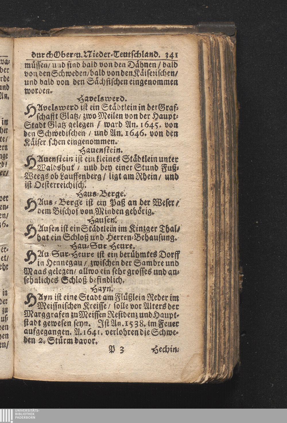 Der getreue Reiß-Gefert durch Ober- und Nieder-Teutschland : Das ist: Grundrichtige und ausführliche Abhandlung derer jenigen Residenzien/ Städte/ Schlösser/ Vestungen/ Städtlein und nahmhafften Markflecken/ welche so wol in Ober- als Nieder-Teutschland/ einem Reisenden sich hin und wieder vorstellig machen und zwar solcher Gestalt/ daß darinn derer Ursprung/ Aufnahm/ Fortification/ Raritäten/ herrliche Gebäue/ und Glück- und Unglücks-Fälle bis auf gegenwärtige Zeit fortgesetzt enthalten. Dabey auch noch über das ein absonderlicher kurz-gefasster Weegweiser angehänget zu finden/ worinnen klärlich zu sehen, wie viel Meilen ein Ort von dem andern entlegen. Alles aus denen bewährtesten Scribenten hervorgesuchet/ zum Nutz-Ergötzen mitgetheilet ...
