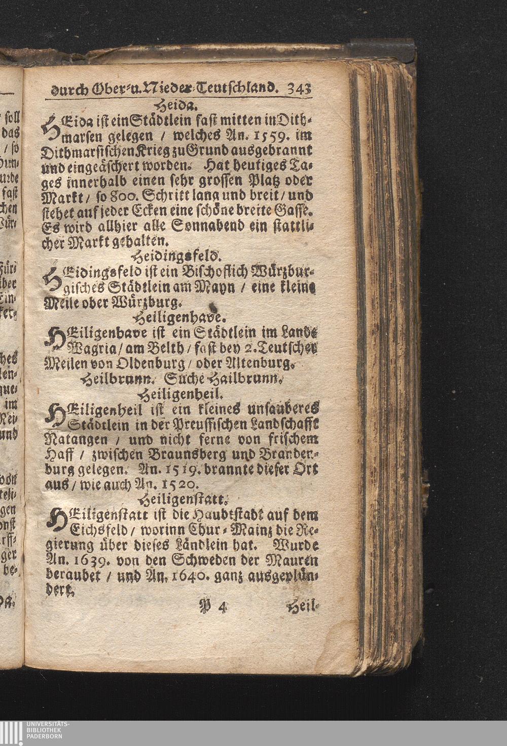 Der getreue Reiß-Gefert durch Ober- und Nieder-Teutschland : Das ist: Grundrichtige und ausführliche Abhandlung derer jenigen Residenzien/ Städte/ Schlösser/ Vestungen/ Städtlein und nahmhafften Markflecken/ welche so wol in Ober- als Nieder-Teutschland/ einem Reisenden sich hin und wieder vorstellig machen und zwar solcher Gestalt/ daß darinn derer Ursprung/ Aufnahm/ Fortification/ Raritäten/ herrliche Gebäue/ und Glück- und Unglücks-Fälle bis auf gegenwärtige Zeit fortgesetzt enthalten. Dabey auch noch über das ein absonderlicher kurz-gefasster Weegweiser angehänget zu finden/ worinnen klärlich zu sehen, wie viel Meilen ein Ort von dem andern entlegen. Alles aus denen bewährtesten Scribenten hervorgesuchet/ zum Nutz-Ergötzen mitgetheilet ...