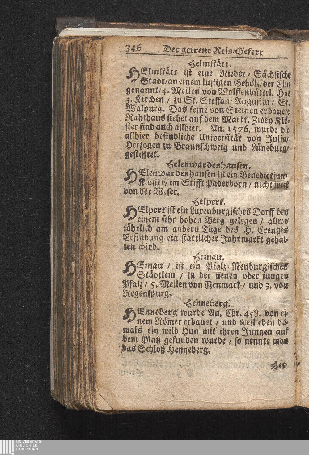 Der getreue Reiß-Gefert durch Ober- und Nieder-Teutschland : Das ist: Grundrichtige und ausführliche Abhandlung derer jenigen Residenzien/ Städte/ Schlösser/ Vestungen/ Städtlein und nahmhafften Markflecken/ welche so wol in Ober- als Nieder-Teutschland/ einem Reisenden sich hin und wieder vorstellig machen und zwar solcher Gestalt/ daß darinn derer Ursprung/ Aufnahm/ Fortification/ Raritäten/ herrliche Gebäue/ und Glück- und Unglücks-Fälle bis auf gegenwärtige Zeit fortgesetzt enthalten. Dabey auch noch über das ein absonderlicher kurz-gefasster Weegweiser angehänget zu finden/ worinnen klärlich zu sehen, wie viel Meilen ein Ort von dem andern entlegen. Alles aus denen bewährtesten Scribenten hervorgesuchet/ zum Nutz-Ergötzen mitgetheilet ...