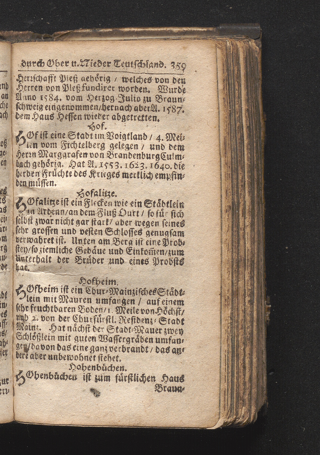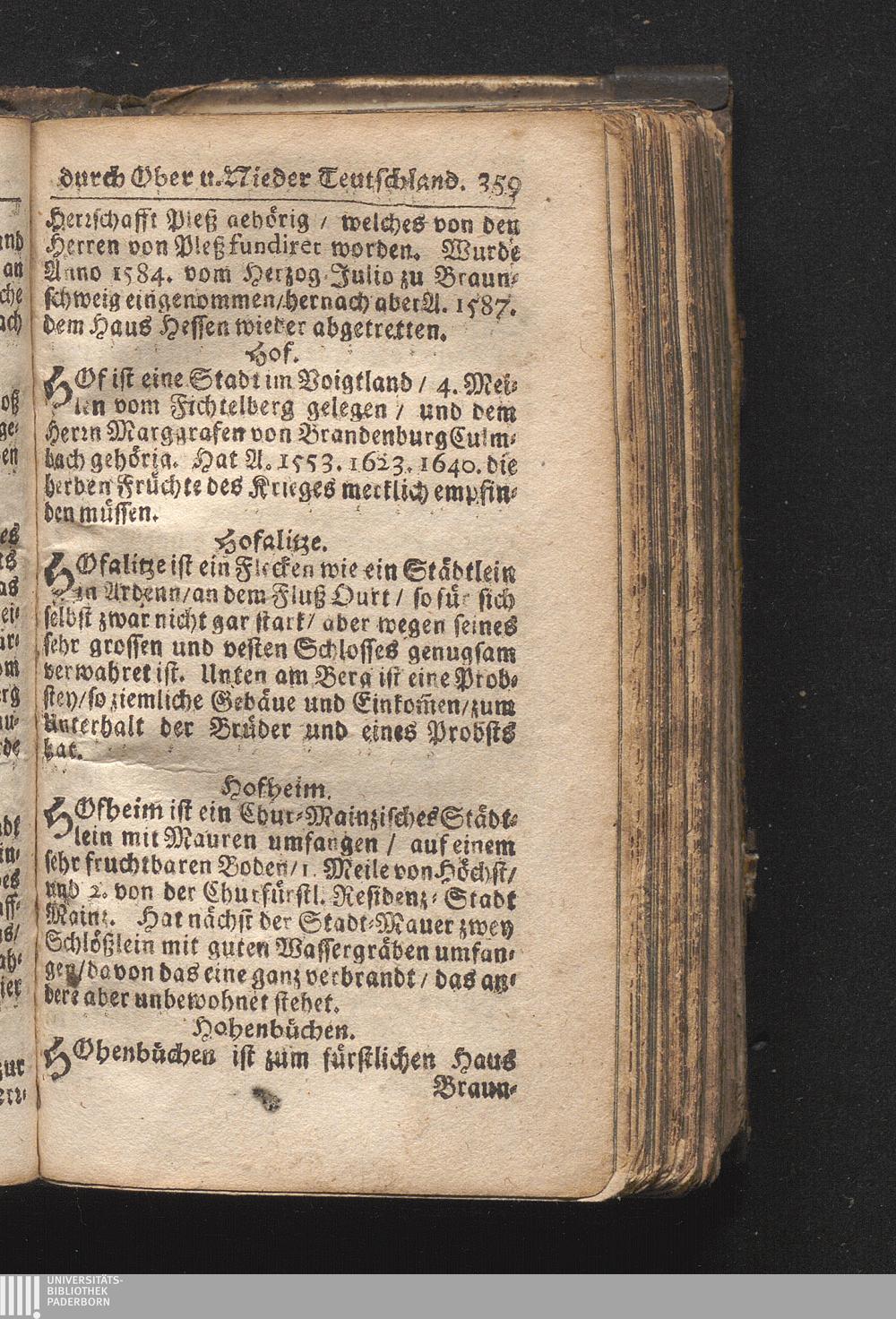Der getreue Reiß-Gefert durch Ober- und Nieder-Teutschland : Das ist: Grundrichtige und ausführliche Abhandlung derer jenigen Residenzien/ Städte/ Schlösser/ Vestungen/ Städtlein und nahmhafften Markflecken/ welche so wol in Ober- als Nieder-Teutschland/ einem Reisenden sich hin und wieder vorstellig machen und zwar solcher Gestalt/ daß darinn derer Ursprung/ Aufnahm/ Fortification/ Raritäten/ herrliche Gebäue/ und Glück- und Unglücks-Fälle bis auf gegenwärtige Zeit fortgesetzt enthalten. Dabey auch noch über das ein absonderlicher kurz-gefasster Weegweiser angehänget zu finden/ worinnen klärlich zu sehen, wie viel Meilen ein Ort von dem andern entlegen. Alles aus denen bewährtesten Scribenten hervorgesuchet/ zum Nutz-Ergötzen mitgetheilet ...