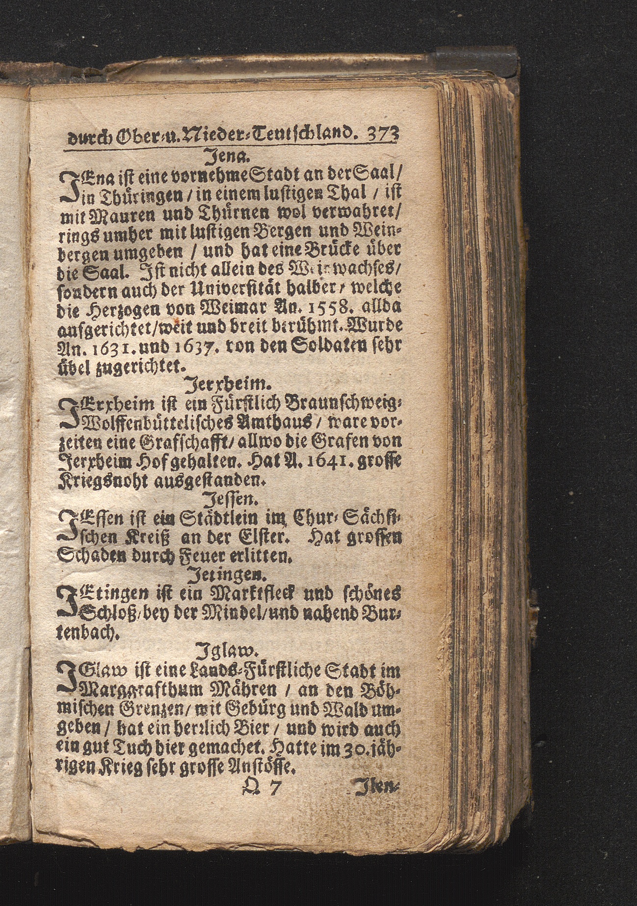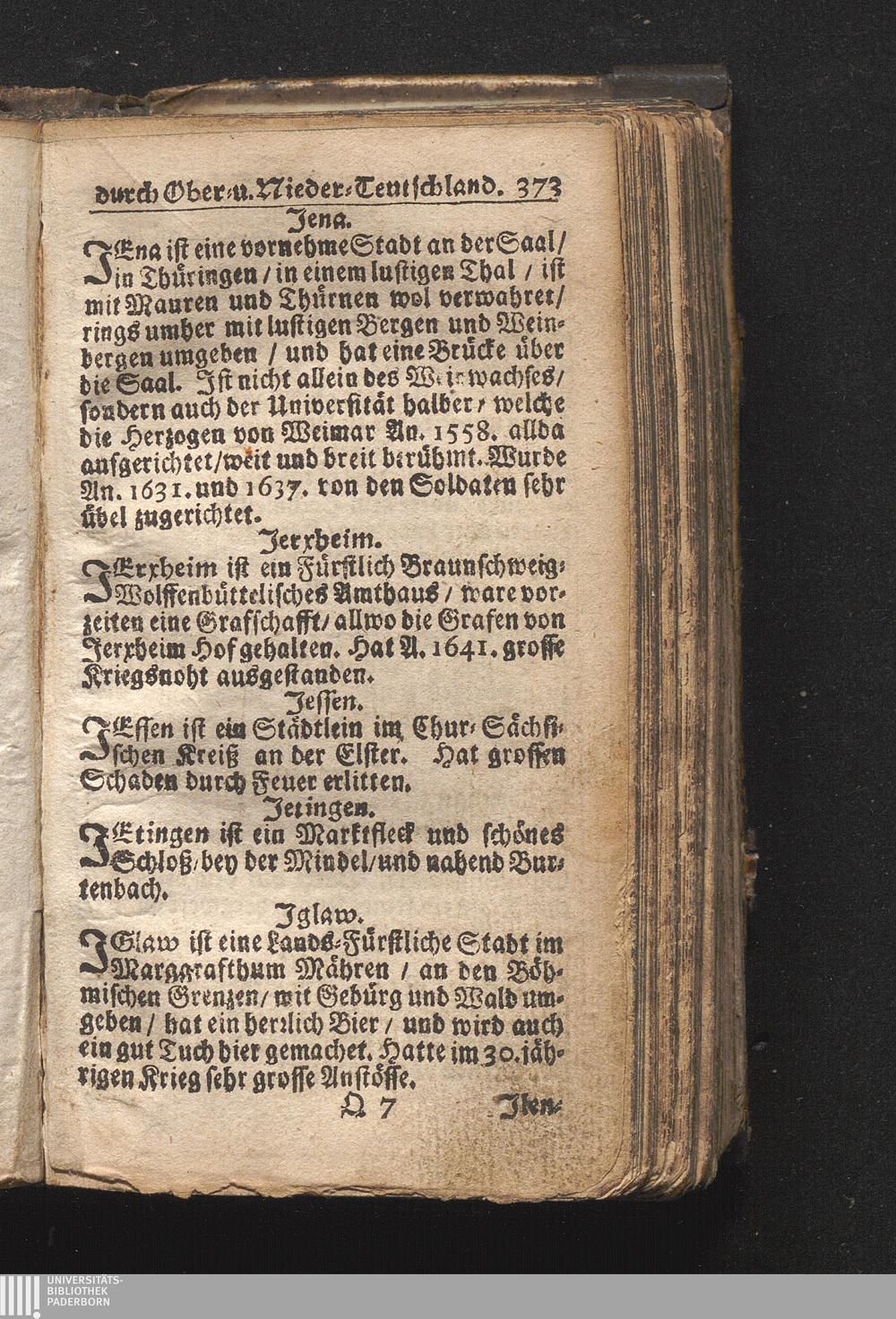 Der getreue Reiß-Gefert durch Ober- und Nieder-Teutschland : Das ist: Grundrichtige und ausführliche Abhandlung derer jenigen Residenzien/ Städte/ Schlösser/ Vestungen/ Städtlein und nahmhafften Markflecken/ welche so wol in Ober- als Nieder-Teutschland/ einem Reisenden sich hin und wieder vorstellig machen und zwar solcher Gestalt/ daß darinn derer Ursprung/ Aufnahm/ Fortification/ Raritäten/ herrliche Gebäue/ und Glück- und Unglücks-Fälle bis auf gegenwärtige Zeit fortgesetzt enthalten. Dabey auch noch über das ein absonderlicher kurz-gefasster Weegweiser angehänget zu finden/ worinnen klärlich zu sehen, wie viel Meilen ein Ort von dem andern entlegen. Alles aus denen bewährtesten Scribenten hervorgesuchet/ zum Nutz-Ergötzen mitgetheilet ...