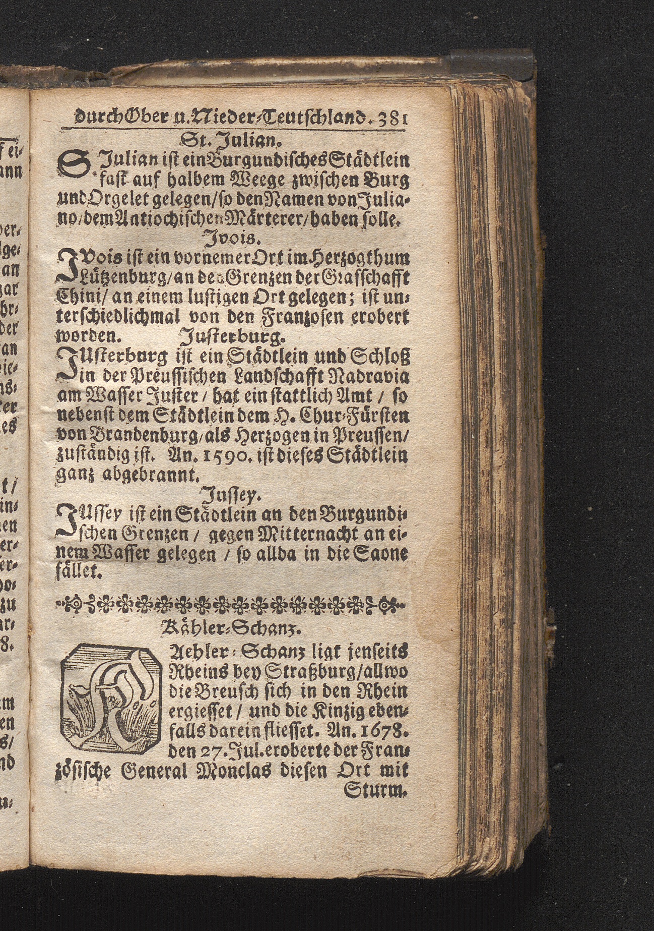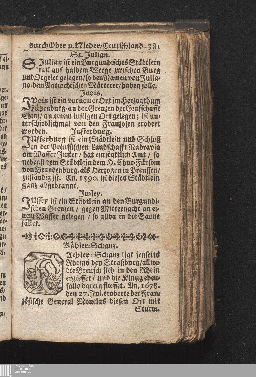 Der getreue Reiß-Gefert durch Ober- und Nieder-Teutschland : Das ist: Grundrichtige und ausführliche Abhandlung derer jenigen Residenzien/ Städte/ Schlösser/ Vestungen/ Städtlein und nahmhafften Markflecken/ welche so wol in Ober- als Nieder-Teutschland/ einem Reisenden sich hin und wieder vorstellig machen und zwar solcher Gestalt/ daß darinn derer Ursprung/ Aufnahm/ Fortification/ Raritäten/ herrliche Gebäue/ und Glück- und Unglücks-Fälle bis auf gegenwärtige Zeit fortgesetzt enthalten. Dabey auch noch über das ein absonderlicher kurz-gefasster Weegweiser angehänget zu finden/ worinnen klärlich zu sehen, wie viel Meilen ein Ort von dem andern entlegen. Alles aus denen bewährtesten Scribenten hervorgesuchet/ zum Nutz-Ergötzen mitgetheilet ...