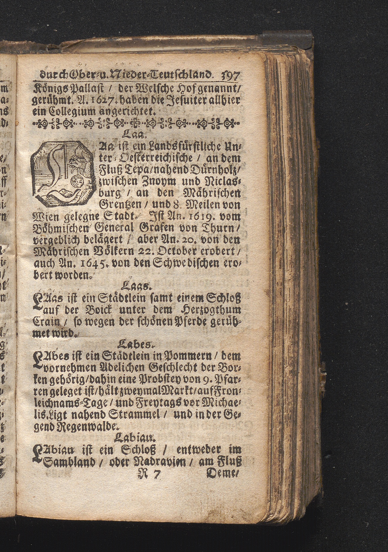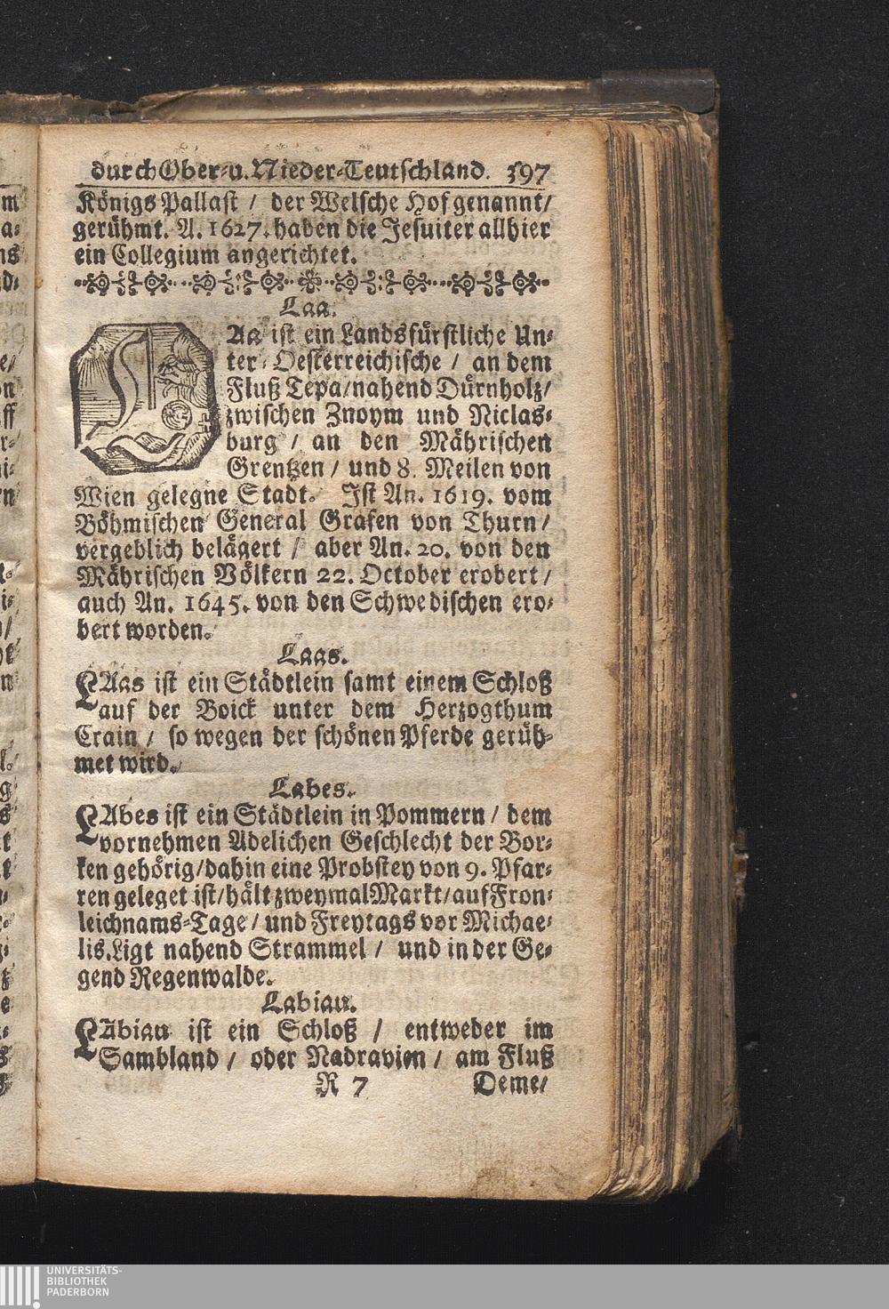 Der getreue Reiß-Gefert durch Ober- und Nieder-Teutschland : Das ist: Grundrichtige und ausführliche Abhandlung derer jenigen Residenzien/ Städte/ Schlösser/ Vestungen/ Städtlein und nahmhafften Markflecken/ welche so wol in Ober- als Nieder-Teutschland/ einem Reisenden sich hin und wieder vorstellig machen und zwar solcher Gestalt/ daß darinn derer Ursprung/ Aufnahm/ Fortification/ Raritäten/ herrliche Gebäue/ und Glück- und Unglücks-Fälle bis auf gegenwärtige Zeit fortgesetzt enthalten. Dabey auch noch über das ein absonderlicher kurz-gefasster Weegweiser angehänget zu finden/ worinnen klärlich zu sehen, wie viel Meilen ein Ort von dem andern entlegen. Alles aus denen bewährtesten Scribenten hervorgesuchet/ zum Nutz-Ergötzen mitgetheilet ...