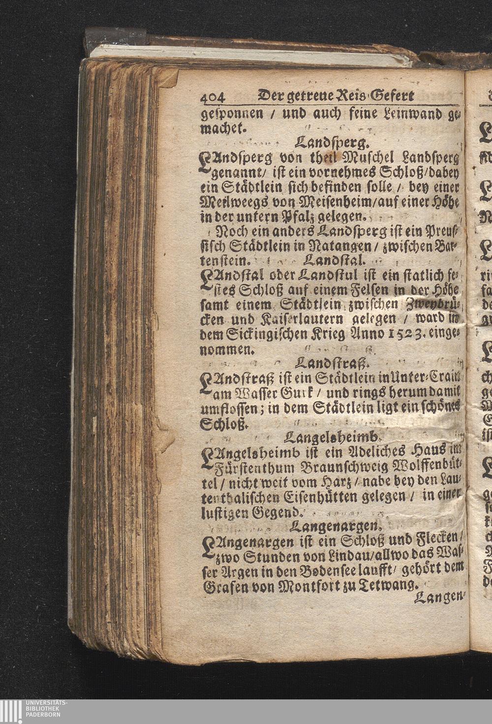 Der getreue Reiß-Gefert durch Ober- und Nieder-Teutschland : Das ist: Grundrichtige und ausführliche Abhandlung derer jenigen Residenzien/ Städte/ Schlösser/ Vestungen/ Städtlein und nahmhafften Markflecken/ welche so wol in Ober- als Nieder-Teutschland/ einem Reisenden sich hin und wieder vorstellig machen und zwar solcher Gestalt/ daß darinn derer Ursprung/ Aufnahm/ Fortification/ Raritäten/ herrliche Gebäue/ und Glück- und Unglücks-Fälle bis auf gegenwärtige Zeit fortgesetzt enthalten. Dabey auch noch über das ein absonderlicher kurz-gefasster Weegweiser angehänget zu finden/ worinnen klärlich zu sehen, wie viel Meilen ein Ort von dem andern entlegen. Alles aus denen bewährtesten Scribenten hervorgesuchet/ zum Nutz-Ergötzen mitgetheilet ...