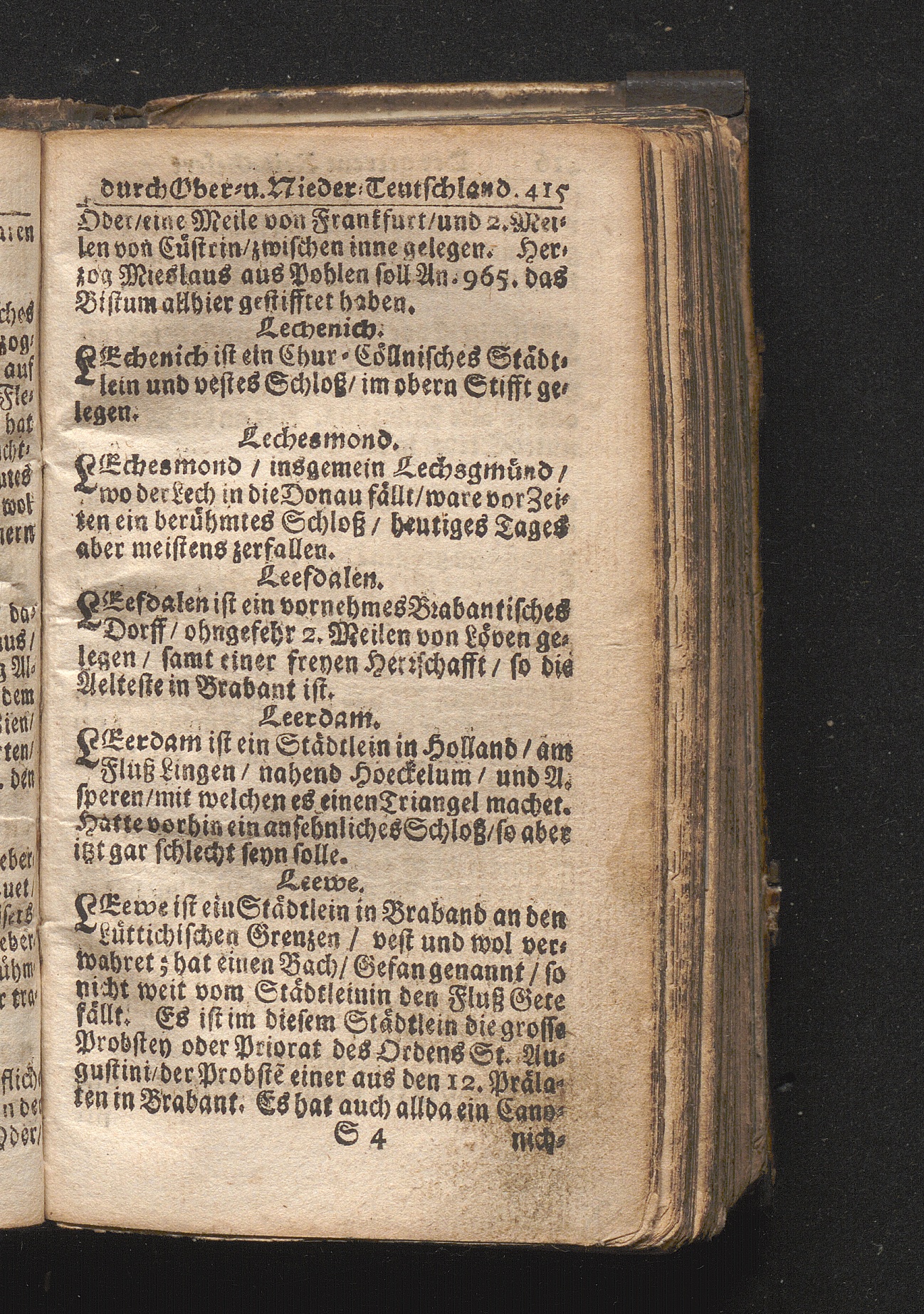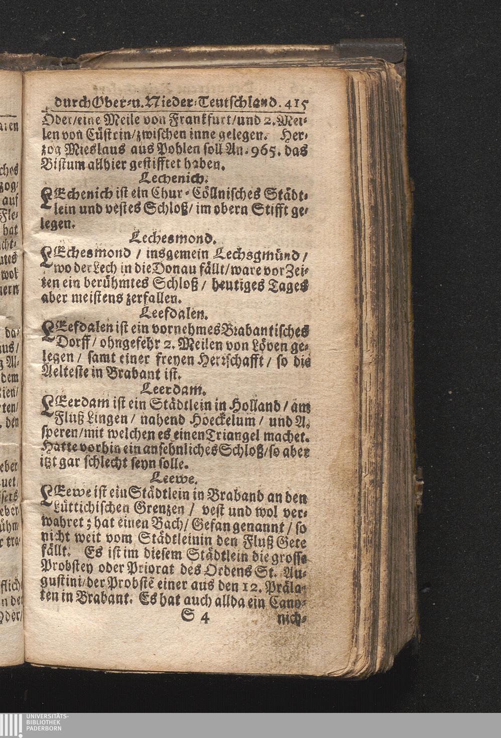 Der getreue Reiß-Gefert durch Ober- und Nieder-Teutschland : Das ist: Grundrichtige und ausführliche Abhandlung derer jenigen Residenzien/ Städte/ Schlösser/ Vestungen/ Städtlein und nahmhafften Markflecken/ welche so wol in Ober- als Nieder-Teutschland/ einem Reisenden sich hin und wieder vorstellig machen und zwar solcher Gestalt/ daß darinn derer Ursprung/ Aufnahm/ Fortification/ Raritäten/ herrliche Gebäue/ und Glück- und Unglücks-Fälle bis auf gegenwärtige Zeit fortgesetzt enthalten. Dabey auch noch über das ein absonderlicher kurz-gefasster Weegweiser angehänget zu finden/ worinnen klärlich zu sehen, wie viel Meilen ein Ort von dem andern entlegen. Alles aus denen bewährtesten Scribenten hervorgesuchet/ zum Nutz-Ergötzen mitgetheilet ...