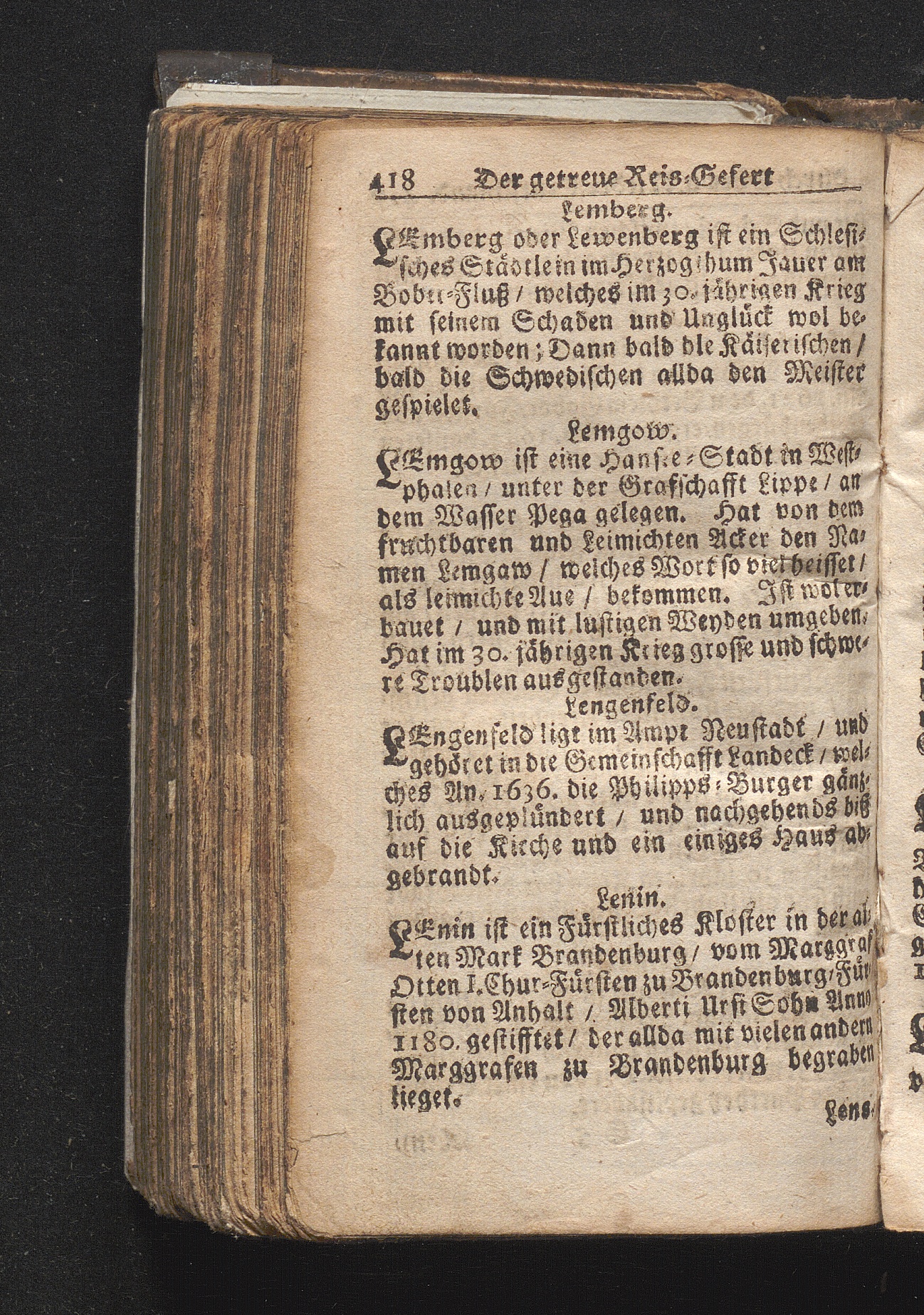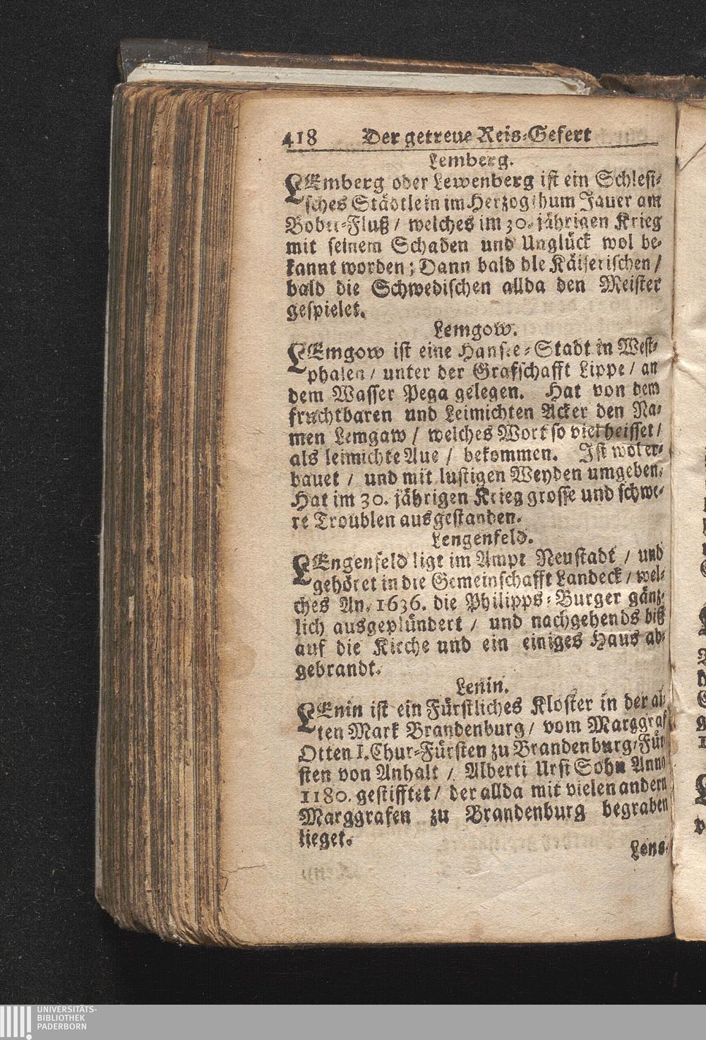 Der getreue Reiß-Gefert durch Ober- und Nieder-Teutschland : Das ist: Grundrichtige und ausführliche Abhandlung derer jenigen Residenzien/ Städte/ Schlösser/ Vestungen/ Städtlein und nahmhafften Markflecken/ welche so wol in Ober- als Nieder-Teutschland/ einem Reisenden sich hin und wieder vorstellig machen und zwar solcher Gestalt/ daß darinn derer Ursprung/ Aufnahm/ Fortification/ Raritäten/ herrliche Gebäue/ und Glück- und Unglücks-Fälle bis auf gegenwärtige Zeit fortgesetzt enthalten. Dabey auch noch über das ein absonderlicher kurz-gefasster Weegweiser angehänget zu finden/ worinnen klärlich zu sehen, wie viel Meilen ein Ort von dem andern entlegen. Alles aus denen bewährtesten Scribenten hervorgesuchet/ zum Nutz-Ergötzen mitgetheilet ...