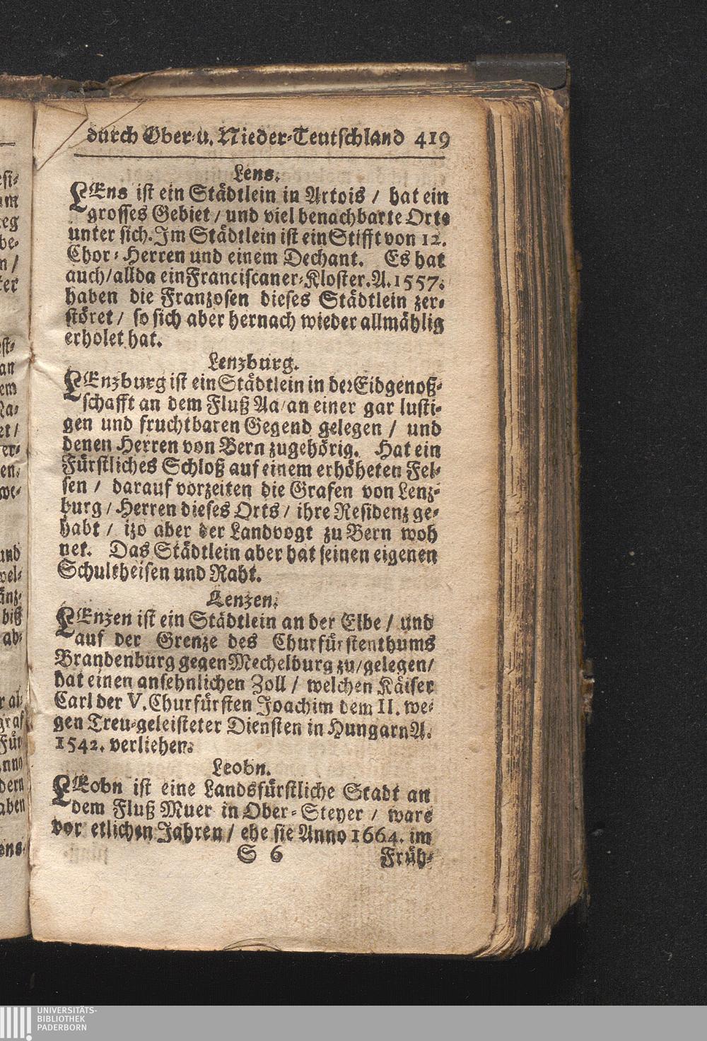 Der getreue Reiß-Gefert durch Ober- und Nieder-Teutschland : Das ist: Grundrichtige und ausführliche Abhandlung derer jenigen Residenzien/ Städte/ Schlösser/ Vestungen/ Städtlein und nahmhafften Markflecken/ welche so wol in Ober- als Nieder-Teutschland/ einem Reisenden sich hin und wieder vorstellig machen und zwar solcher Gestalt/ daß darinn derer Ursprung/ Aufnahm/ Fortification/ Raritäten/ herrliche Gebäue/ und Glück- und Unglücks-Fälle bis auf gegenwärtige Zeit fortgesetzt enthalten. Dabey auch noch über das ein absonderlicher kurz-gefasster Weegweiser angehänget zu finden/ worinnen klärlich zu sehen, wie viel Meilen ein Ort von dem andern entlegen. Alles aus denen bewährtesten Scribenten hervorgesuchet/ zum Nutz-Ergötzen mitgetheilet ...