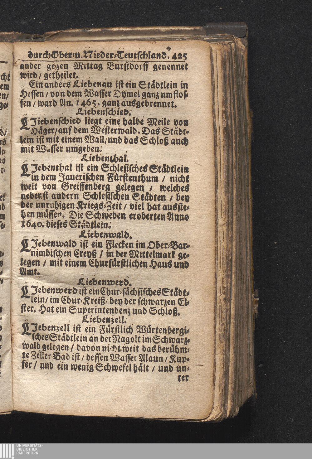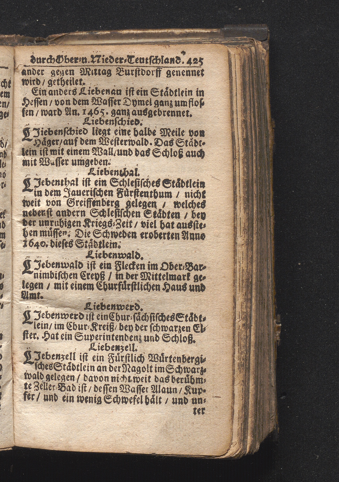 Der getreue Reiß-Gefert durch Ober- und Nieder-Teutschland : Das ist: Grundrichtige und ausführliche Abhandlung derer jenigen Residenzien/ Städte/ Schlösser/ Vestungen/ Städtlein und nahmhafften Markflecken/ welche so wol in Ober- als Nieder-Teutschland/ einem Reisenden sich hin und wieder vorstellig machen und zwar solcher Gestalt/ daß darinn derer Ursprung/ Aufnahm/ Fortification/ Raritäten/ herrliche Gebäue/ und Glück- und Unglücks-Fälle bis auf gegenwärtige Zeit fortgesetzt enthalten. Dabey auch noch über das ein absonderlicher kurz-gefasster Weegweiser angehänget zu finden/ worinnen klärlich zu sehen, wie viel Meilen ein Ort von dem andern entlegen. Alles aus denen bewährtesten Scribenten hervorgesuchet/ zum Nutz-Ergötzen mitgetheilet ...