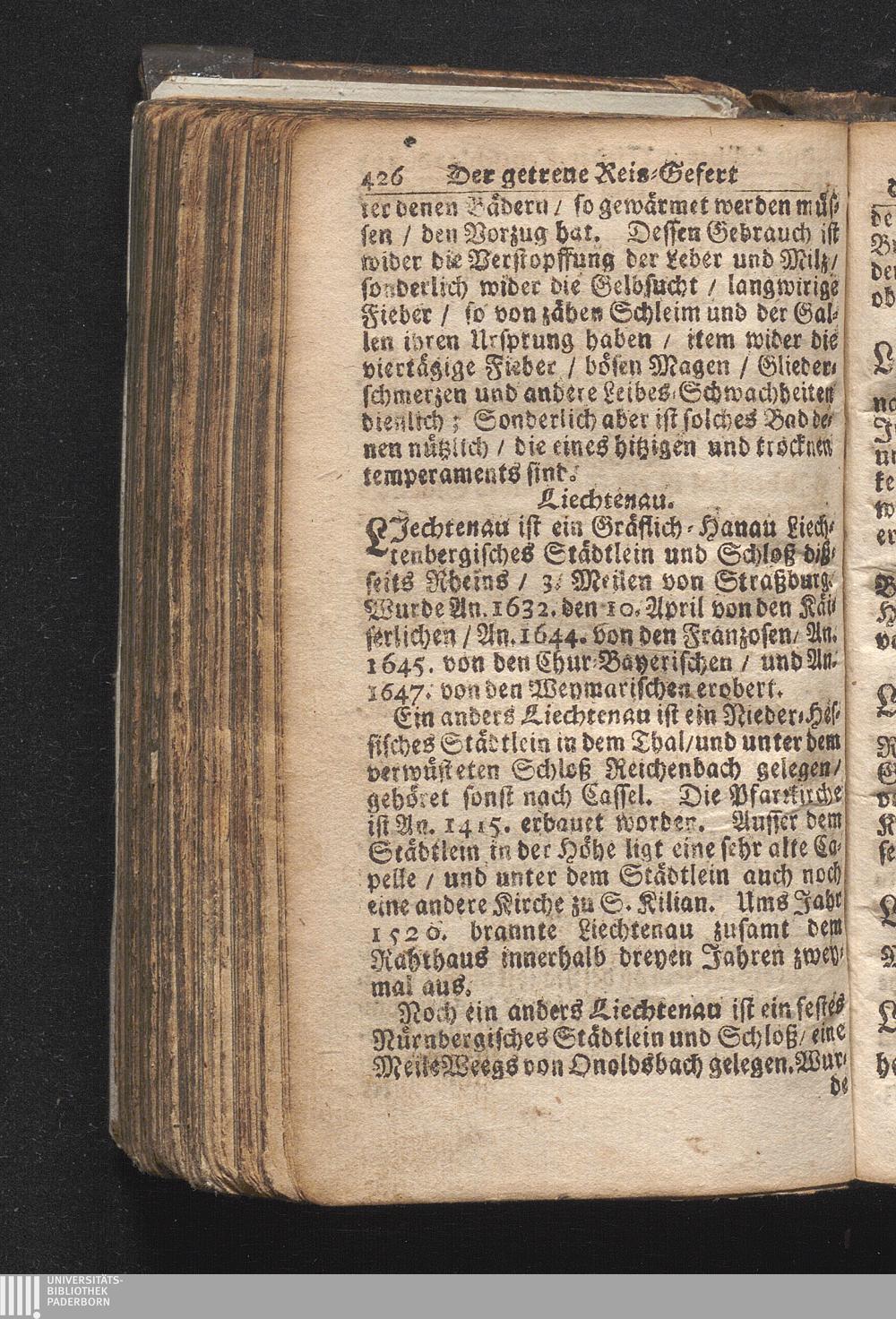 Der getreue Reiß-Gefert durch Ober- und Nieder-Teutschland : Das ist: Grundrichtige und ausführliche Abhandlung derer jenigen Residenzien/ Städte/ Schlösser/ Vestungen/ Städtlein und nahmhafften Markflecken/ welche so wol in Ober- als Nieder-Teutschland/ einem Reisenden sich hin und wieder vorstellig machen und zwar solcher Gestalt/ daß darinn derer Ursprung/ Aufnahm/ Fortification/ Raritäten/ herrliche Gebäue/ und Glück- und Unglücks-Fälle bis auf gegenwärtige Zeit fortgesetzt enthalten. Dabey auch noch über das ein absonderlicher kurz-gefasster Weegweiser angehänget zu finden/ worinnen klärlich zu sehen, wie viel Meilen ein Ort von dem andern entlegen. Alles aus denen bewährtesten Scribenten hervorgesuchet/ zum Nutz-Ergötzen mitgetheilet ...