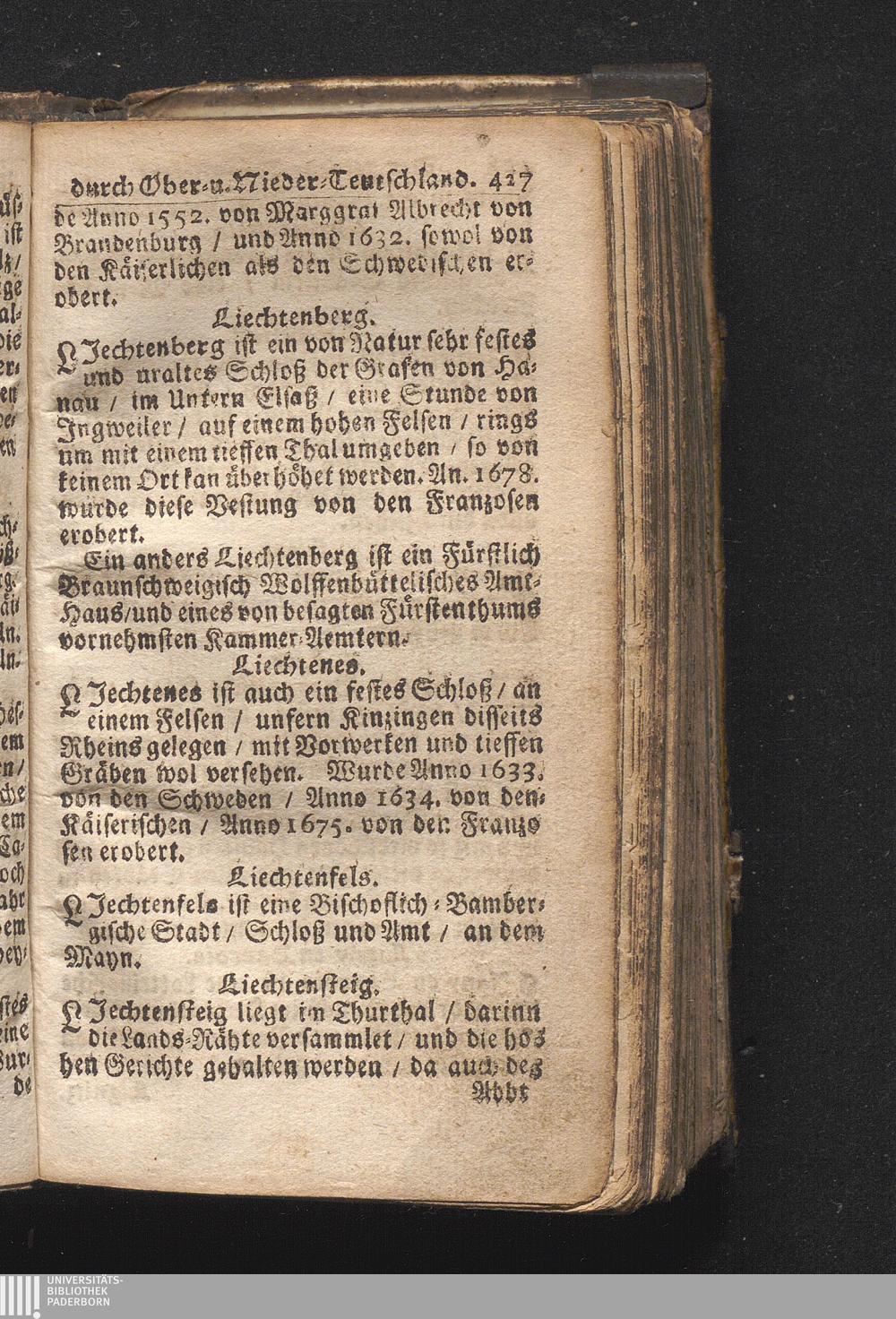 Der getreue Reiß-Gefert durch Ober- und Nieder-Teutschland : Das ist: Grundrichtige und ausführliche Abhandlung derer jenigen Residenzien/ Städte/ Schlösser/ Vestungen/ Städtlein und nahmhafften Markflecken/ welche so wol in Ober- als Nieder-Teutschland/ einem Reisenden sich hin und wieder vorstellig machen und zwar solcher Gestalt/ daß darinn derer Ursprung/ Aufnahm/ Fortification/ Raritäten/ herrliche Gebäue/ und Glück- und Unglücks-Fälle bis auf gegenwärtige Zeit fortgesetzt enthalten. Dabey auch noch über das ein absonderlicher kurz-gefasster Weegweiser angehänget zu finden/ worinnen klärlich zu sehen, wie viel Meilen ein Ort von dem andern entlegen. Alles aus denen bewährtesten Scribenten hervorgesuchet/ zum Nutz-Ergötzen mitgetheilet ...