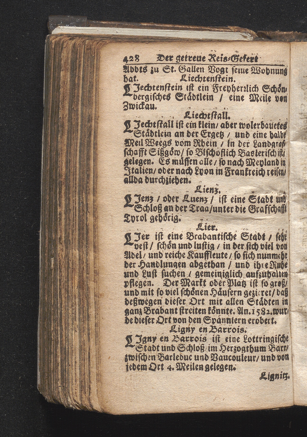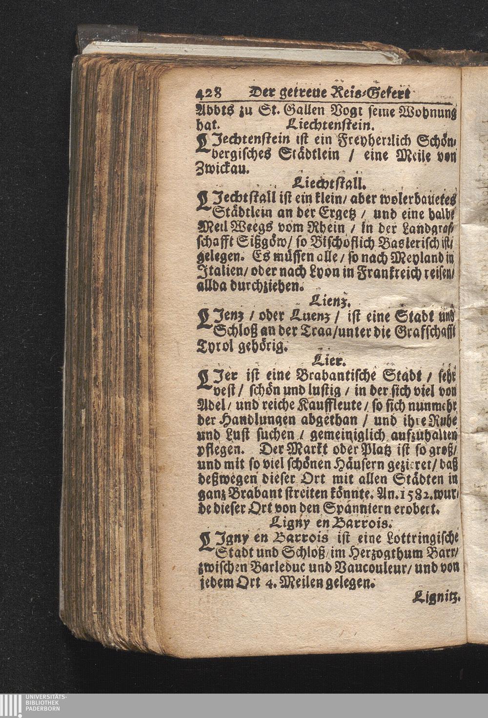 Der getreue Reiß-Gefert durch Ober- und Nieder-Teutschland : Das ist: Grundrichtige und ausführliche Abhandlung derer jenigen Residenzien/ Städte/ Schlösser/ Vestungen/ Städtlein und nahmhafften Markflecken/ welche so wol in Ober- als Nieder-Teutschland/ einem Reisenden sich hin und wieder vorstellig machen und zwar solcher Gestalt/ daß darinn derer Ursprung/ Aufnahm/ Fortification/ Raritäten/ herrliche Gebäue/ und Glück- und Unglücks-Fälle bis auf gegenwärtige Zeit fortgesetzt enthalten. Dabey auch noch über das ein absonderlicher kurz-gefasster Weegweiser angehänget zu finden/ worinnen klärlich zu sehen, wie viel Meilen ein Ort von dem andern entlegen. Alles aus denen bewährtesten Scribenten hervorgesuchet/ zum Nutz-Ergötzen mitgetheilet ...